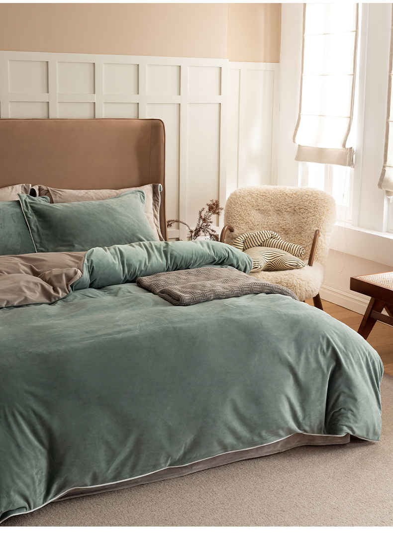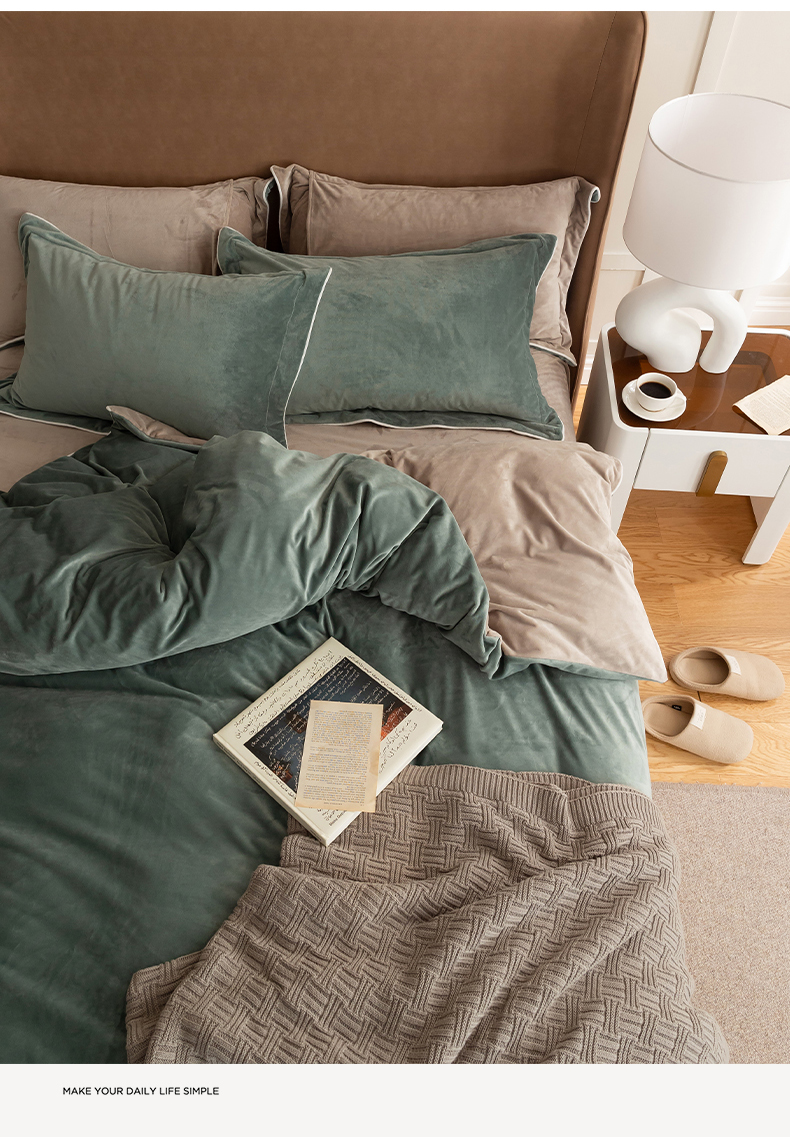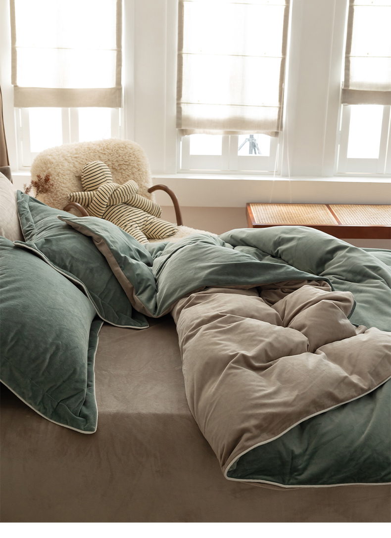 (总)万盛家纺 2025新款速暖绒保暖速干四件套,淡彩绿—奶油咖,粉玉—奶油咖,克洛尔兰—深空灰,梦幻蓝—烟灰,奶油咖—烟灰,深咖—奶油咖,烟灰—克洛尔兰