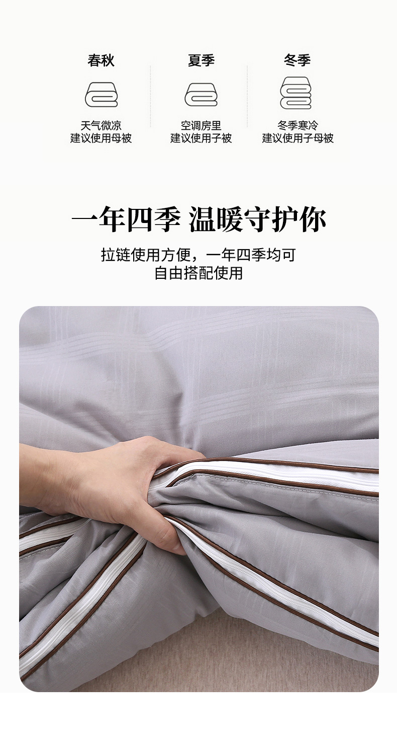前程家纺 2025新款烫钻款被冬被春秋被拉链二合一子母被双胎被拉链款 烫钻款-灰色