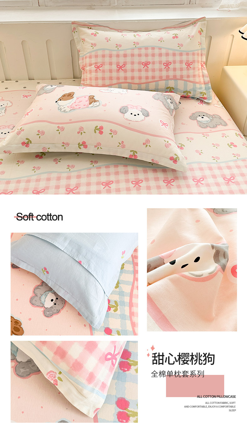 商品名称:绵庭家纺 2025新款全棉印花单枕套系列 甜心樱桃狗