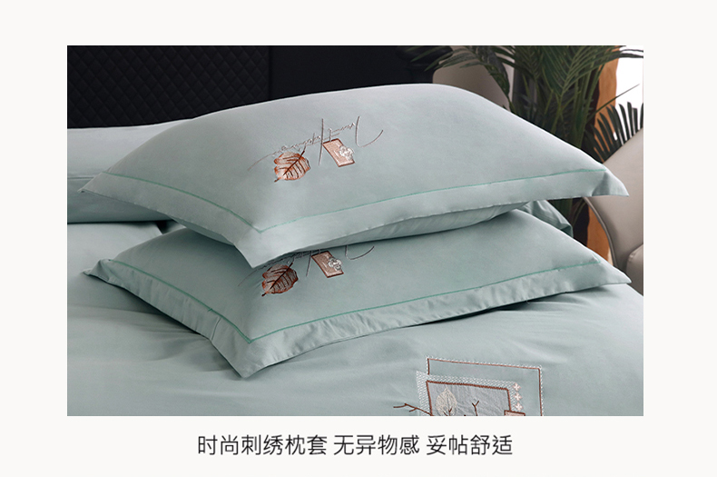 商品名称:金纱玉纺家纺 2024新款素色加厚公艺绣花四件套 叶香风暖-灰绿