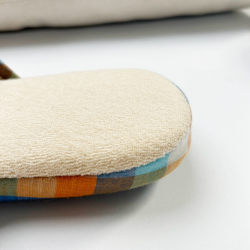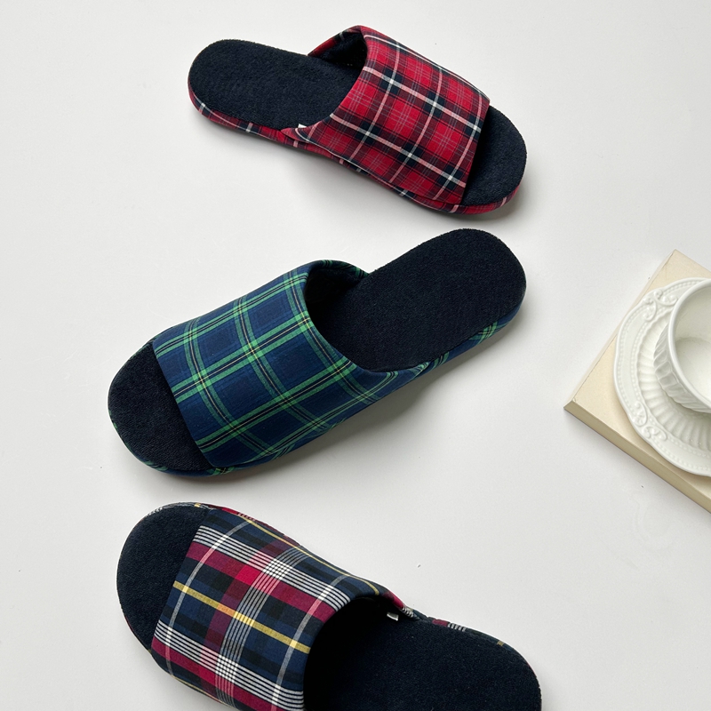 商品名称:(总)南通盟生鞋业有限公司 2024新款日式开口经典色织格子配毛巾布TPR复布静音防滑大底家居拖鞋