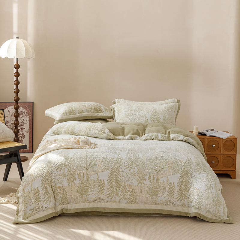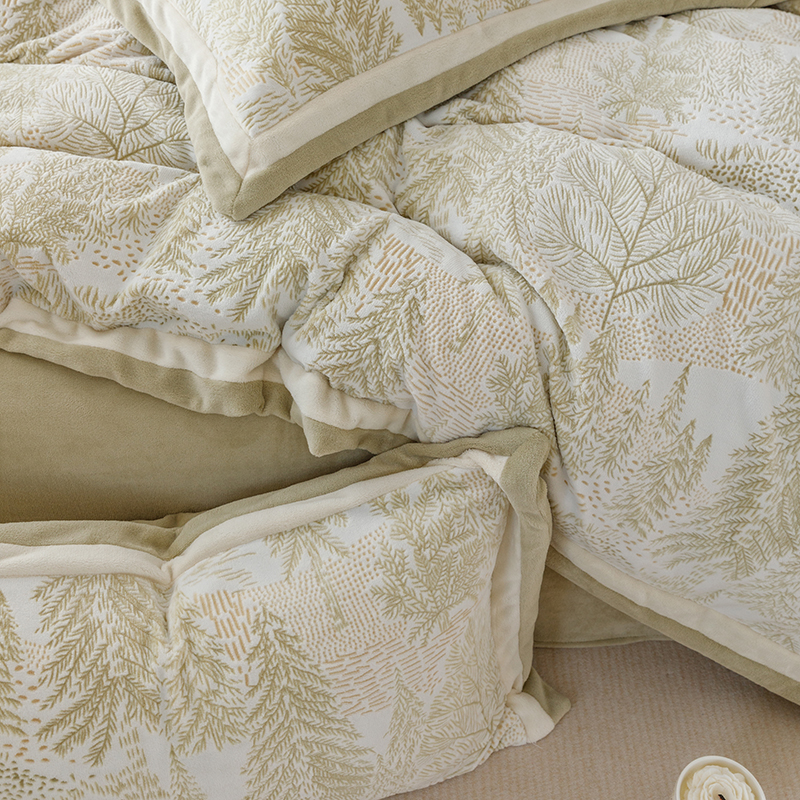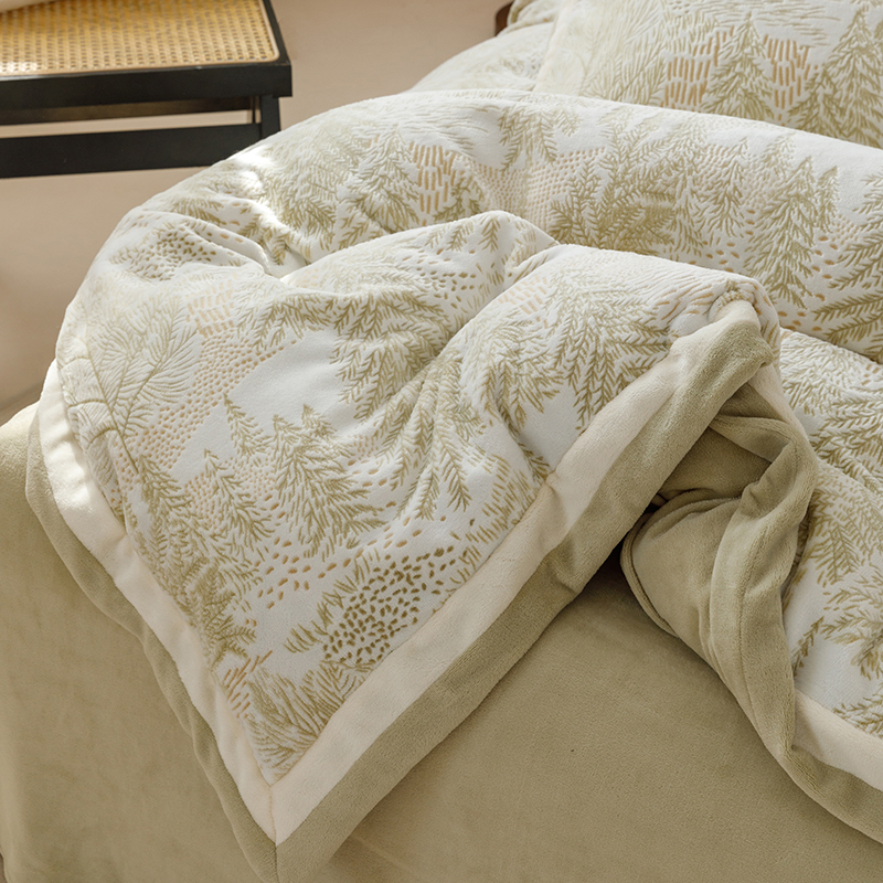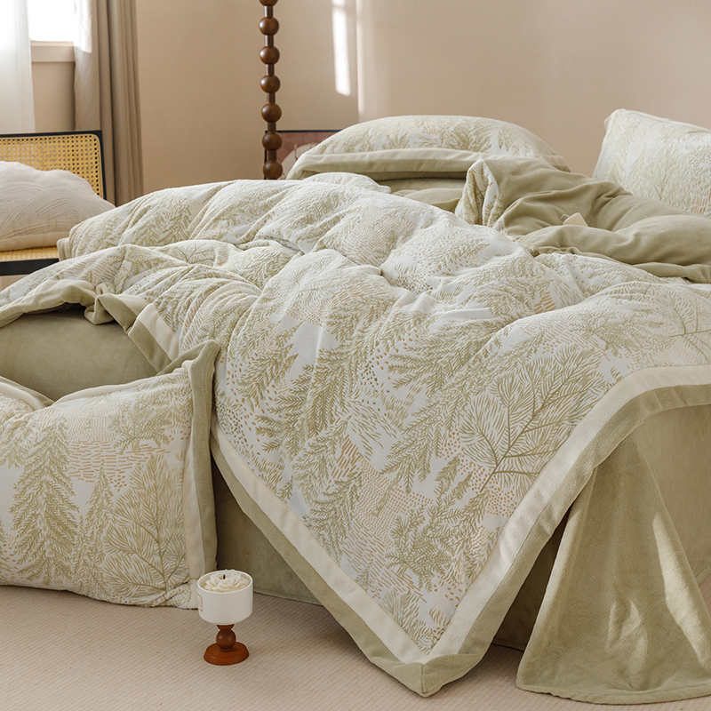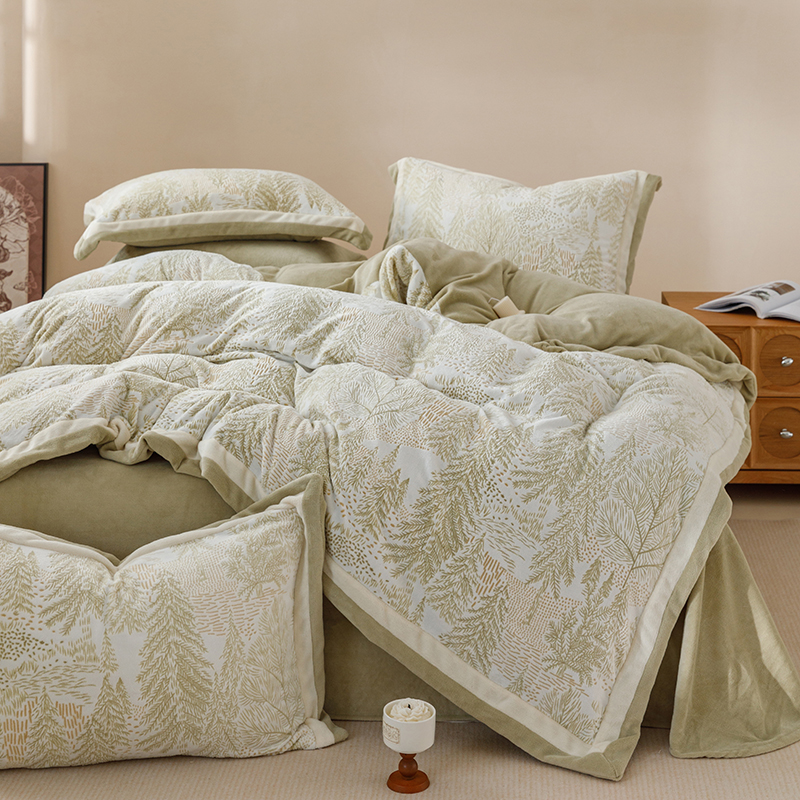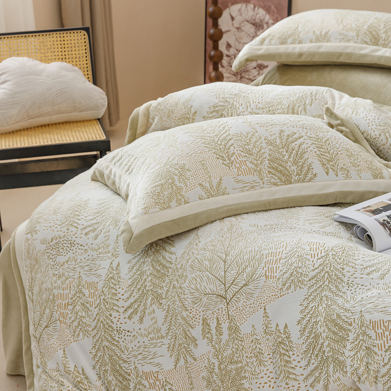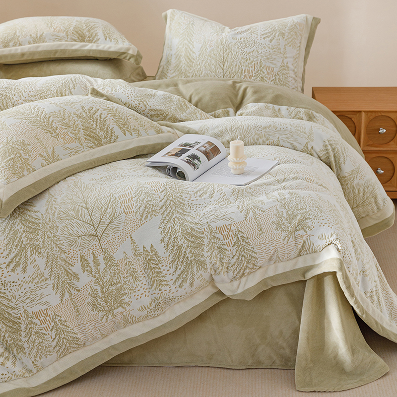 富瑞阁 2024新款雕花烂花牛奶绒拼边款四件套 秘密森林