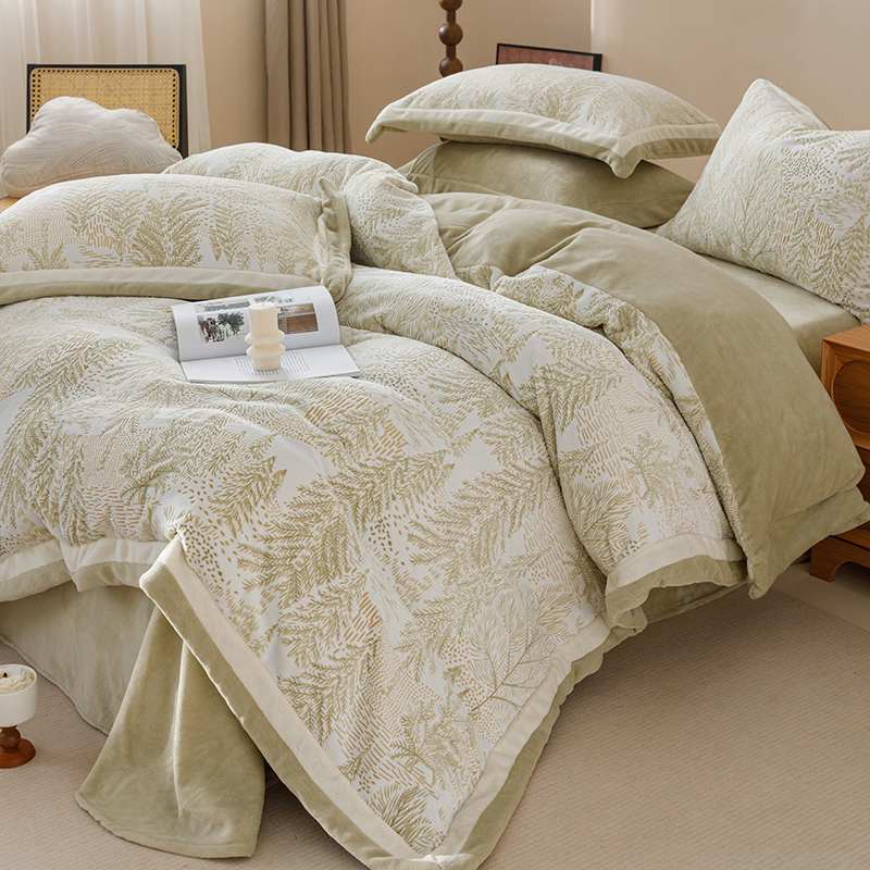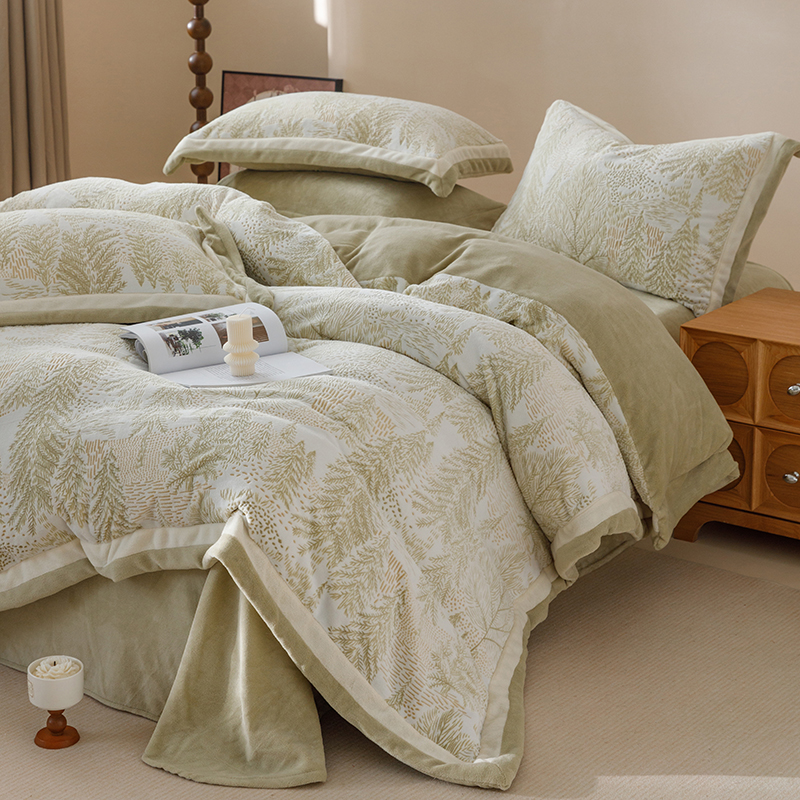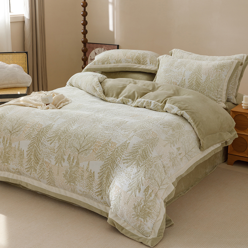 商品名称:富瑞阁 2024新款雕花烂花牛奶绒拼边款四件套 秘密森林