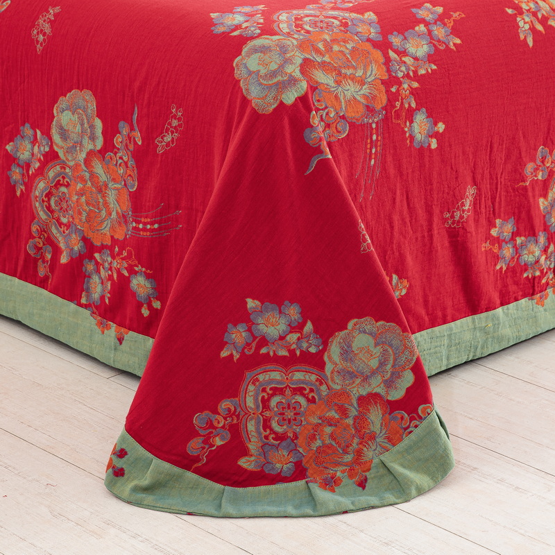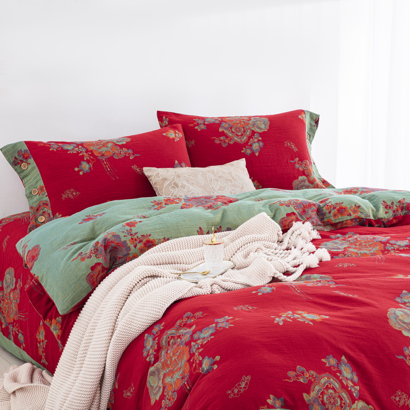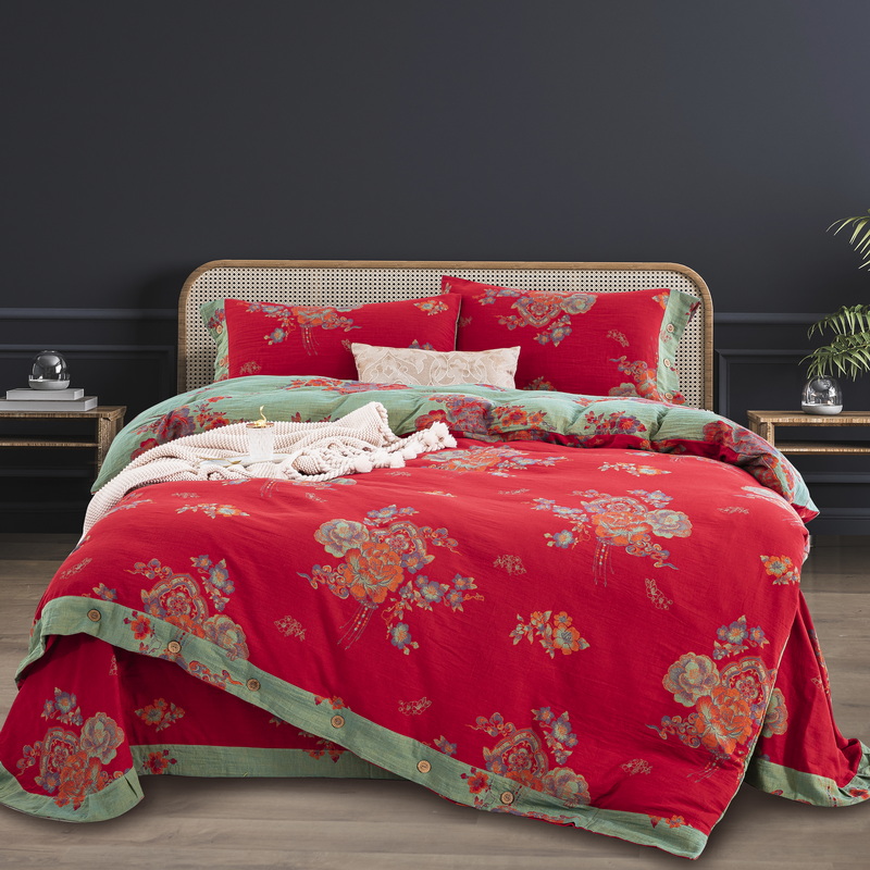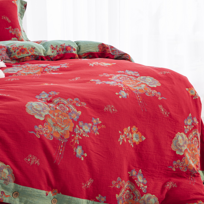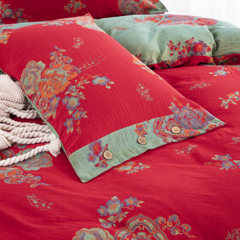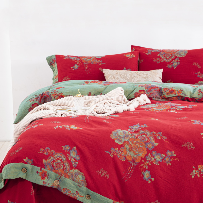 商品名称:鲁爱 2025新款全棉色织双层纱纽扣款四件套 锦绣芳华
