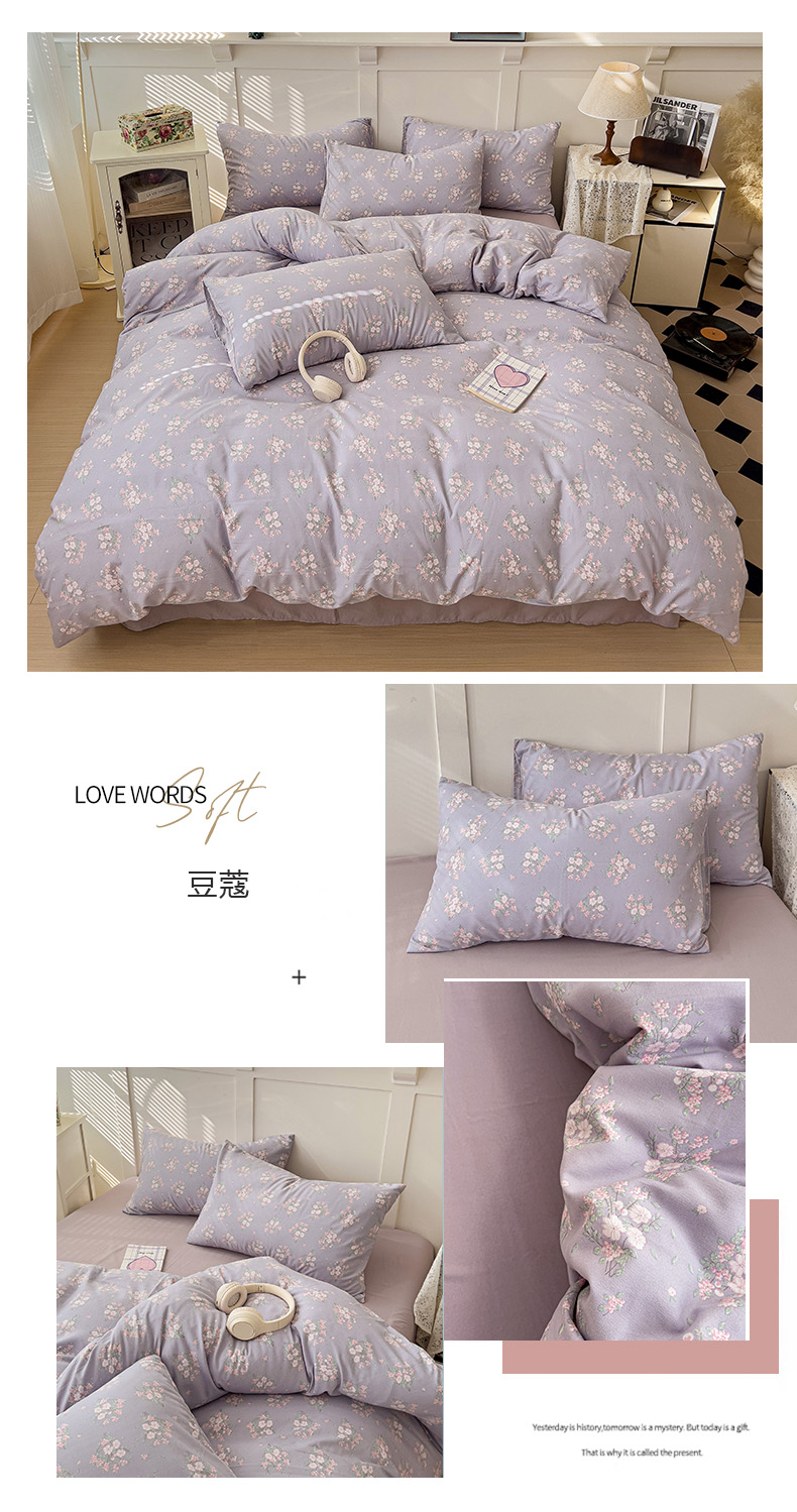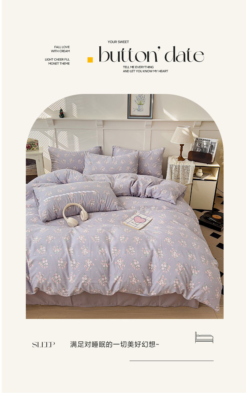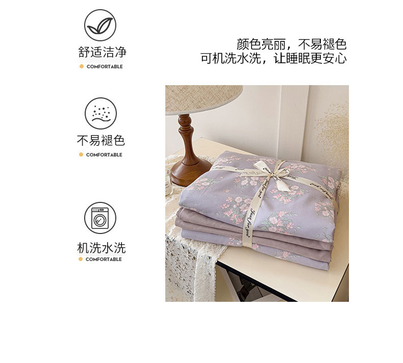 (总)金梦拉家纺 2026春夏韩版花边款小碎花古法水洗仿棉A类砂洗云小棉四件套,薄荷奶绿,海盐奶蓝,梦幻紫,柠檬奶黄,芝士蜜桃,海盐奶咖