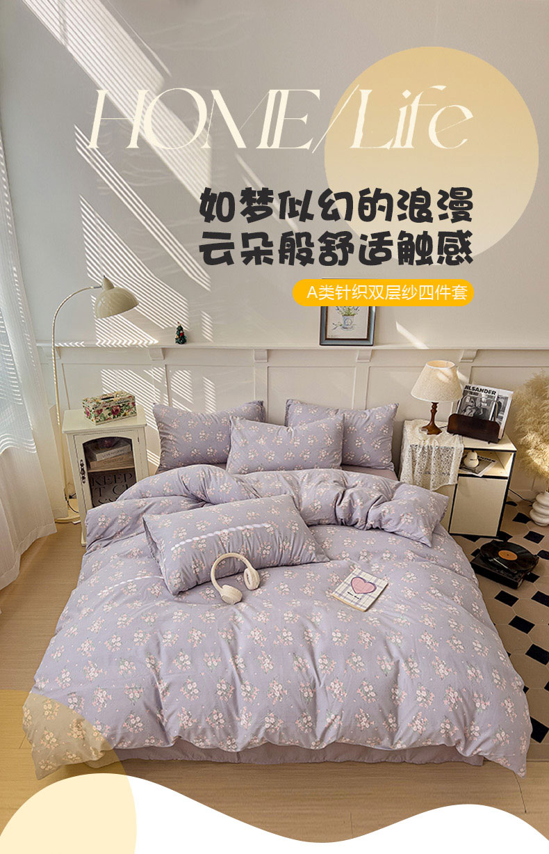 (总)金梦拉家纺 2025新款秋冬新款双层纱四件套田园风印花,小南瓜,哈基米,浪漫紫芙,梦幻星河,陌上花开,奶油波点,桃喜微风,小旺仔,紫芙香,紫曦