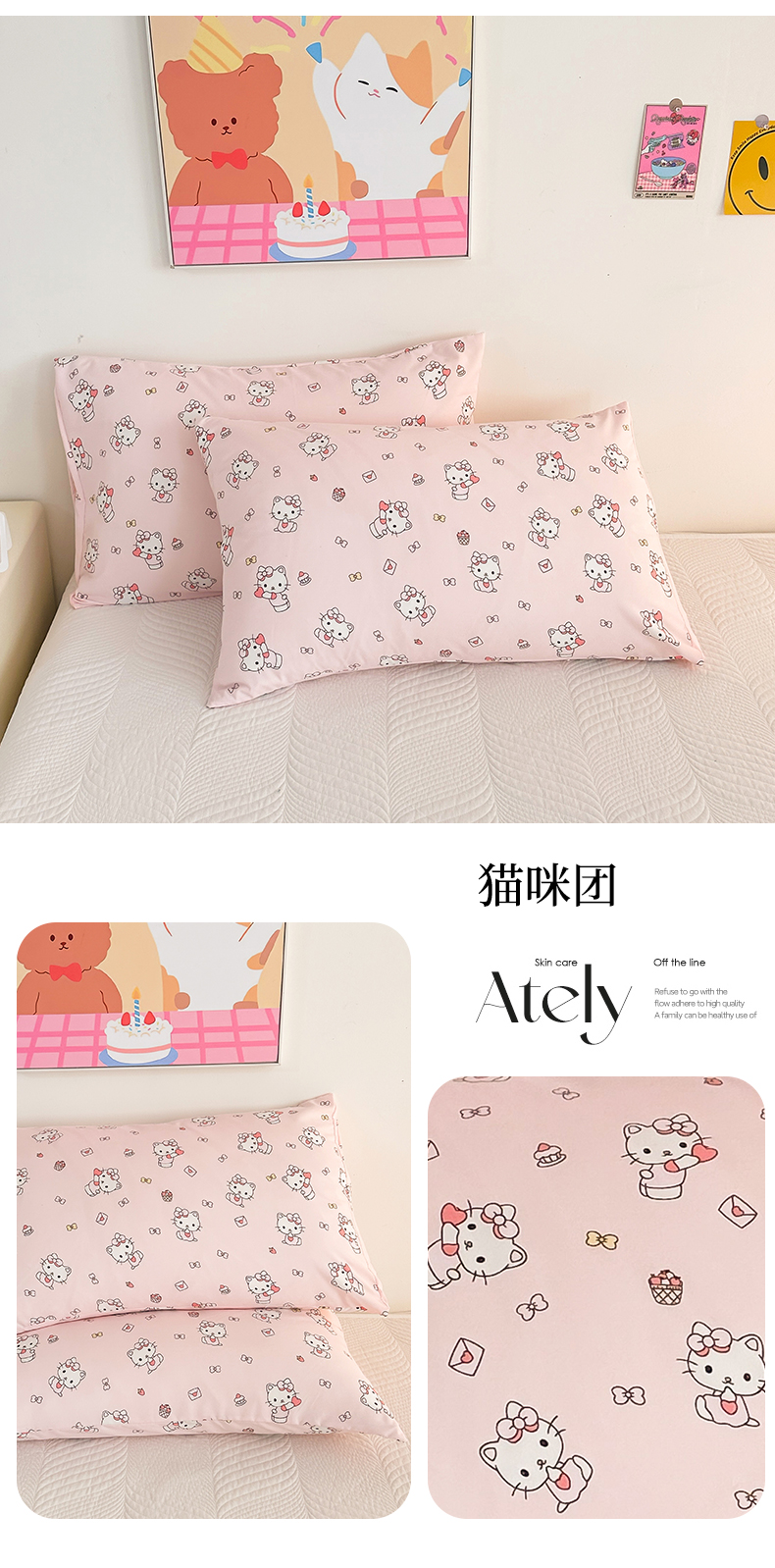 商品名称:多品家纺 2025新款卡通系列柔水洗棉枕套 猫咪团