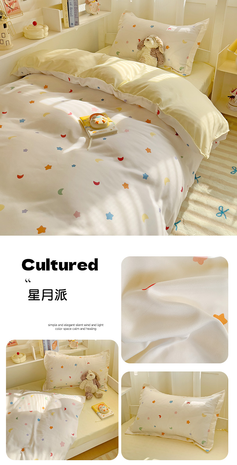 商品名称:港岛妹妹 2024新款芦荟棉印花四件套四件套学生床宿舍图星月派
