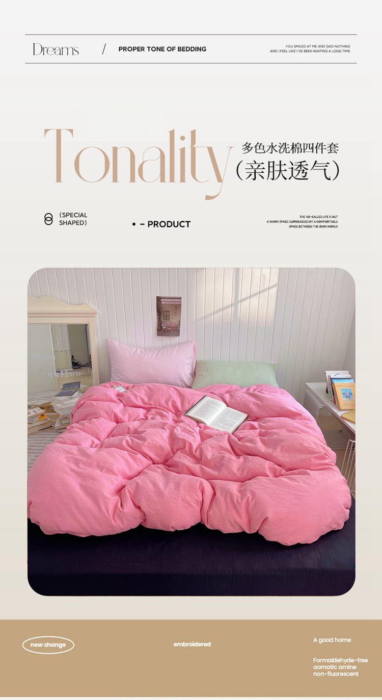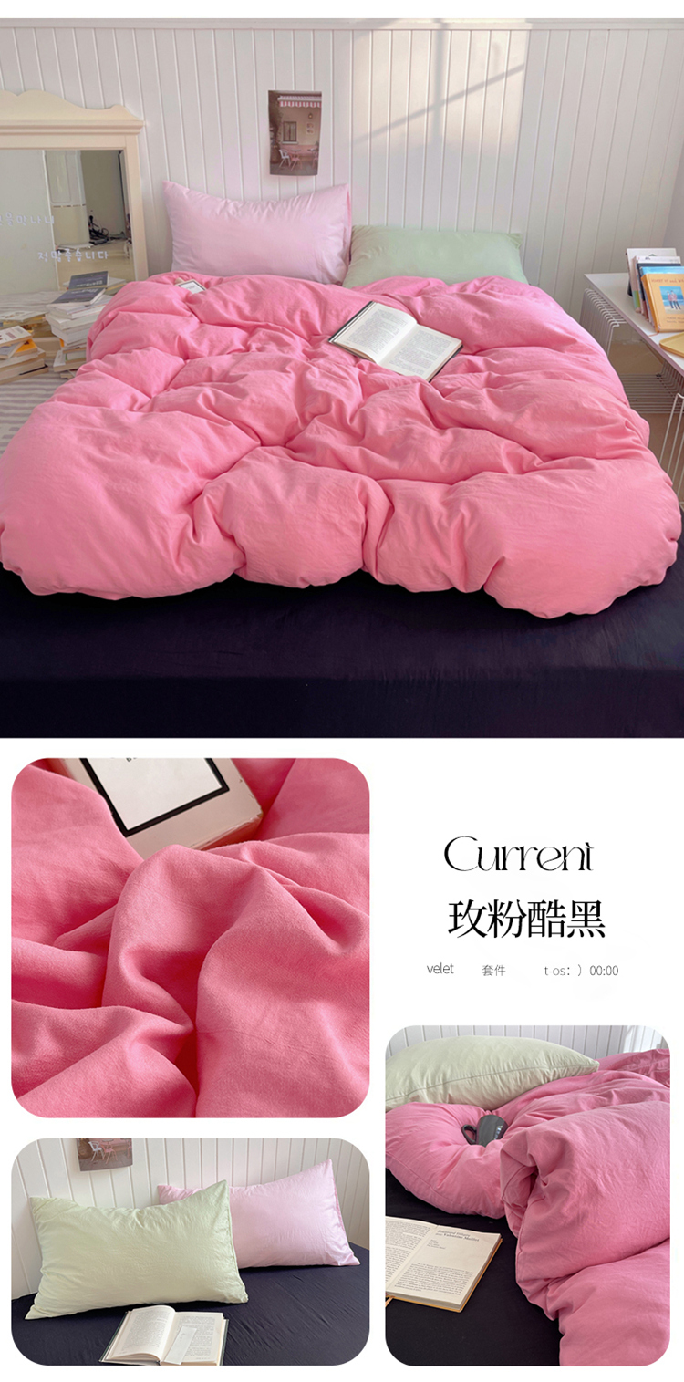 当前位置: 91家纺网 > 商品网购 > 床品套件 > 四件套 > 其它四件套 > 2025新款ins博主风纯色混搭双色水洗m四件套(软糯舒适,非市场普通面料!!!) 多色水洗m-玫粉酷黑