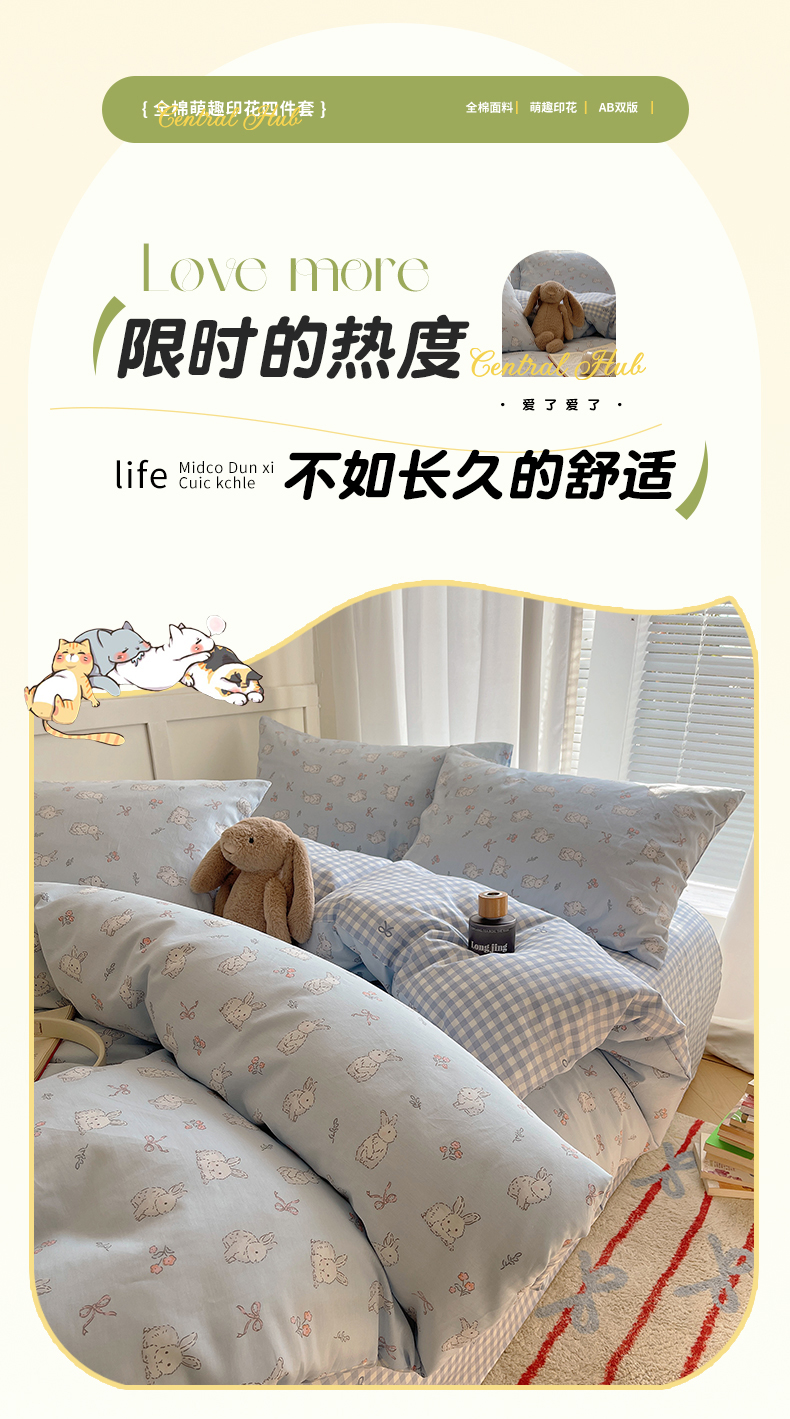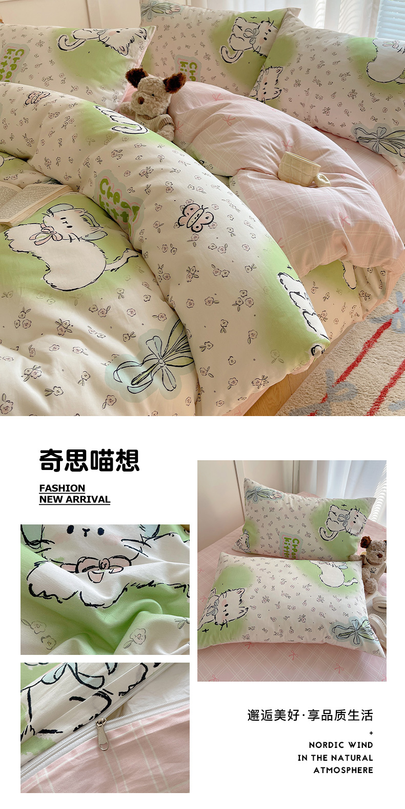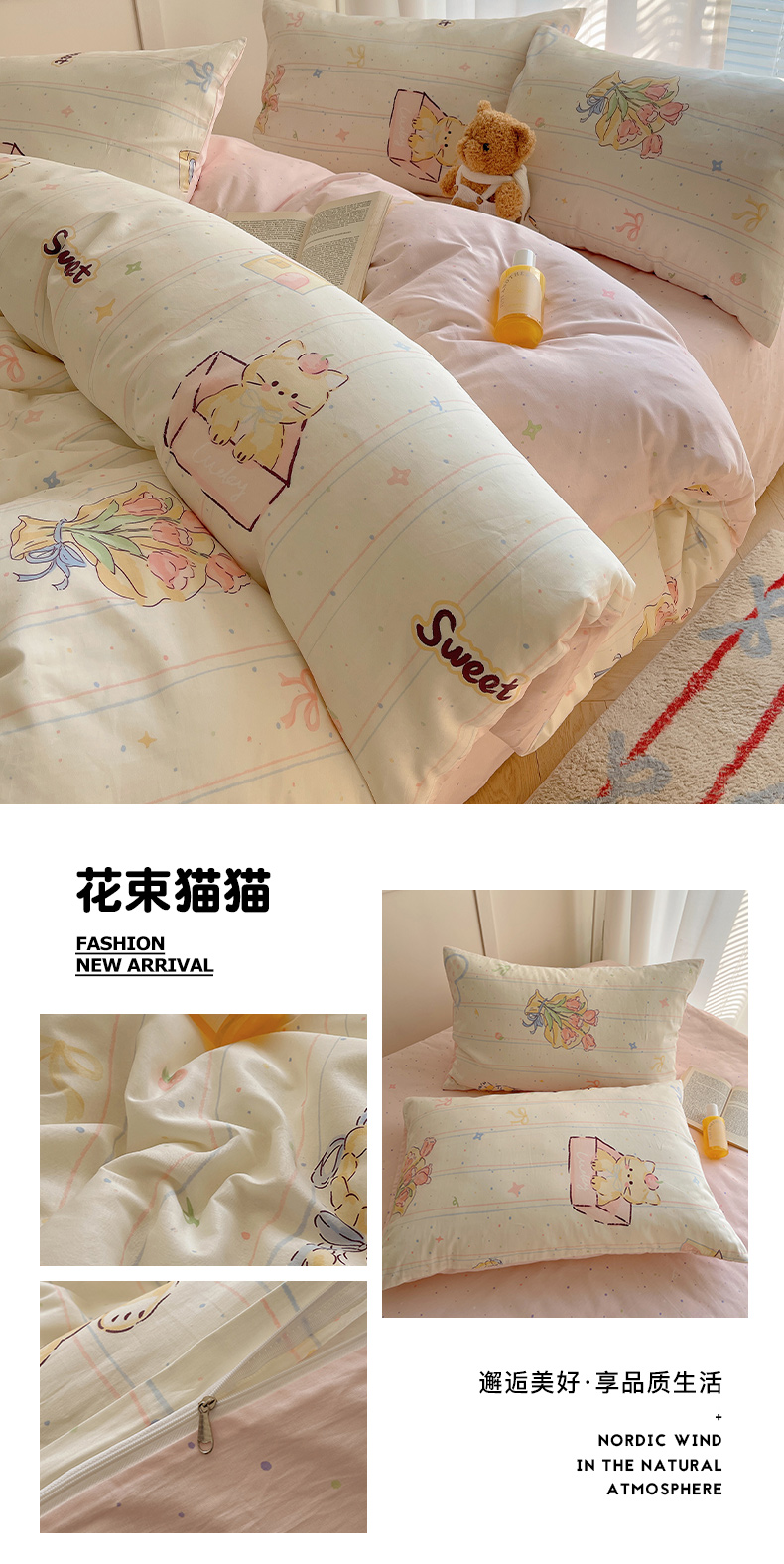 (总)瑞莱 2026春季新款全棉纯棉印花小清新萌趣系列四件套,小懒猫,KT猫,可爱猫咪,蓝花兔,路灯影院,莓果小萌,帕丁顿兔兔,企鹅家族,趣味涂鸦,甜梦日记,甜梦小精灵,甜心KT,小镇漫游记