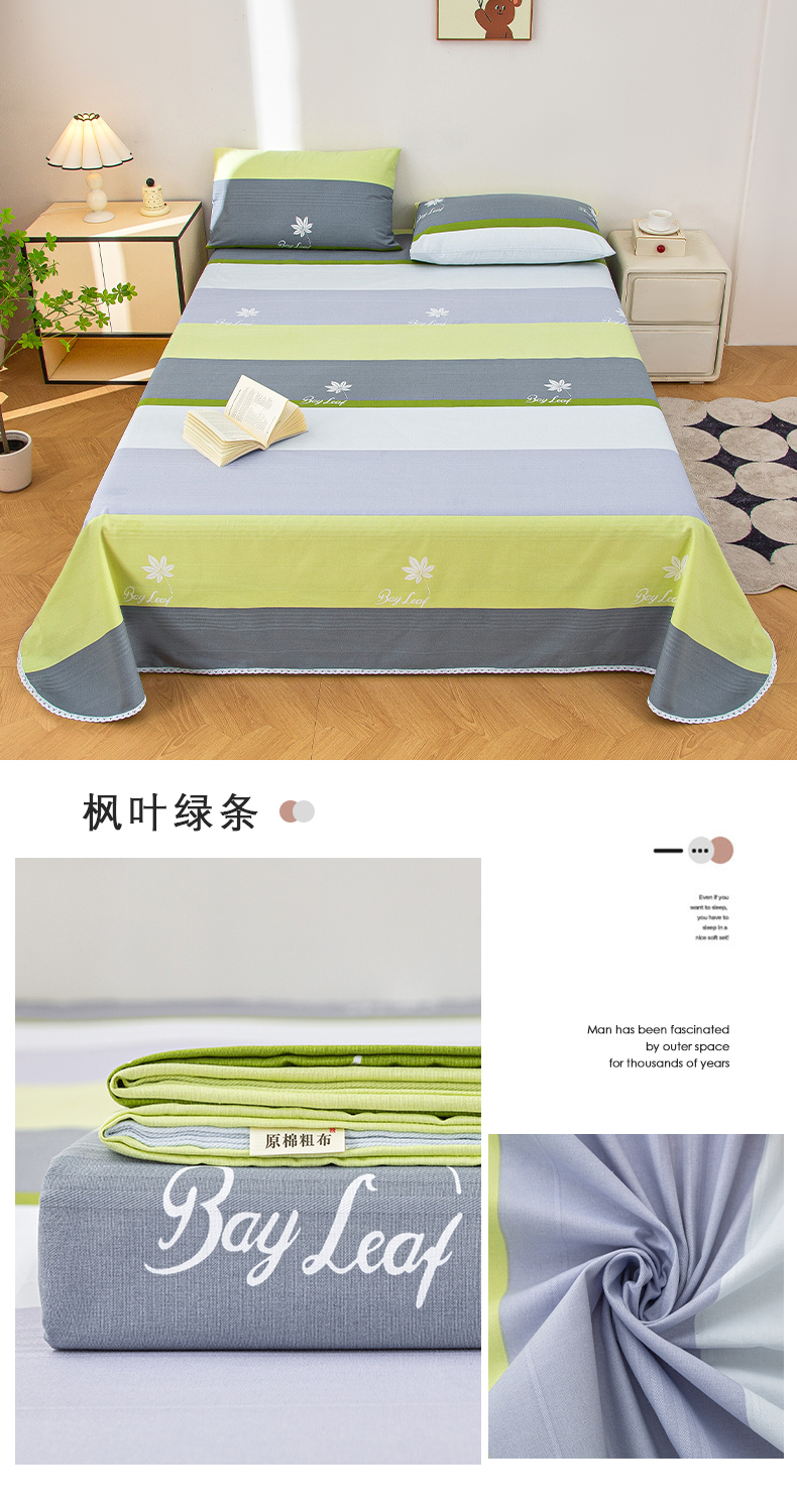 商品名称:金泰莱 2025新款五幅段床单 枫叶绿条