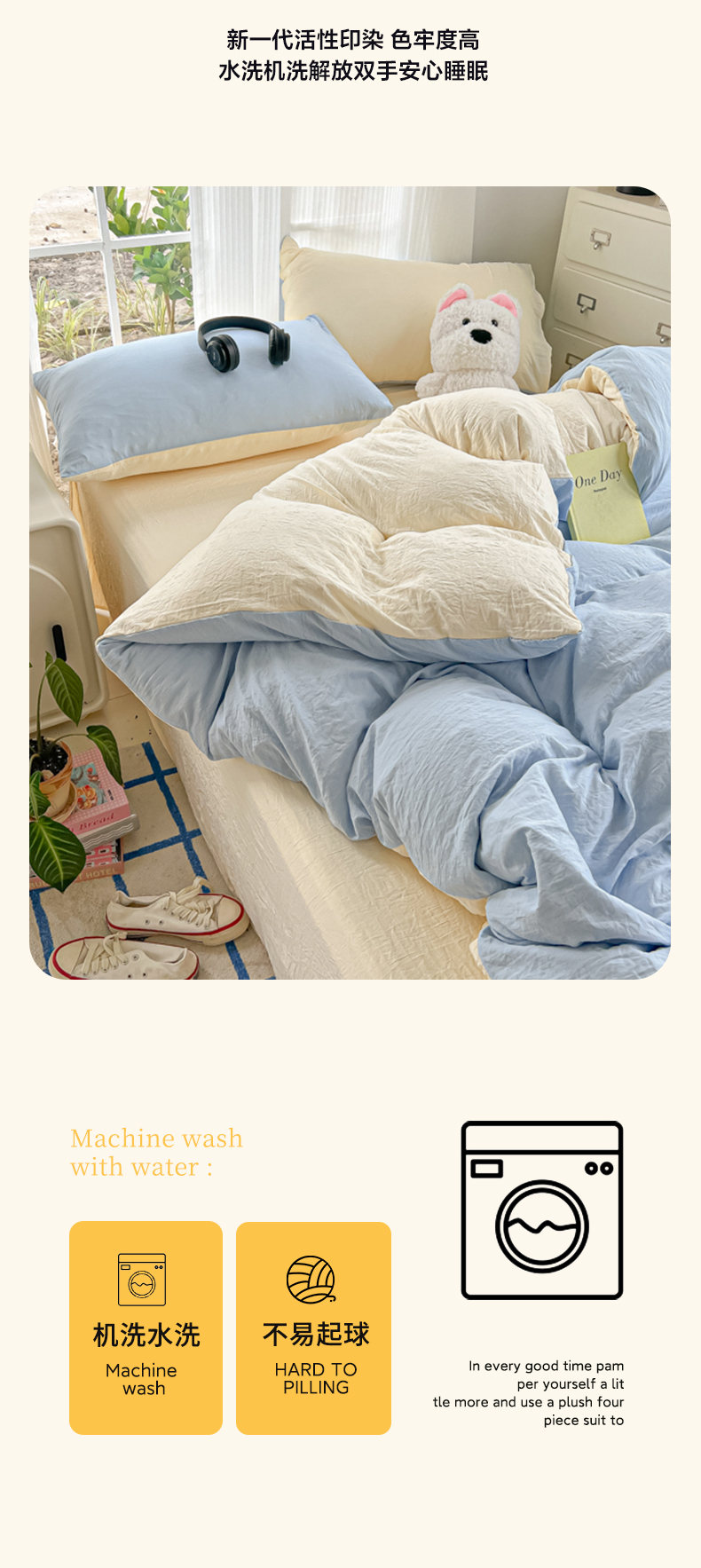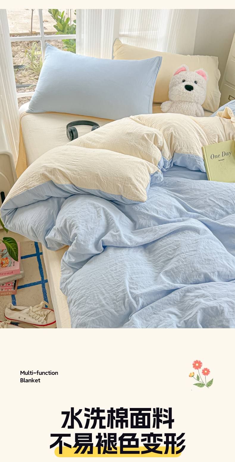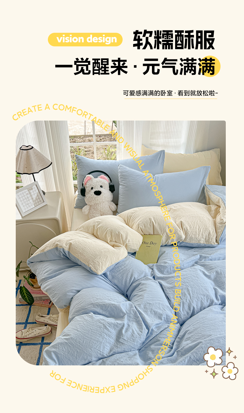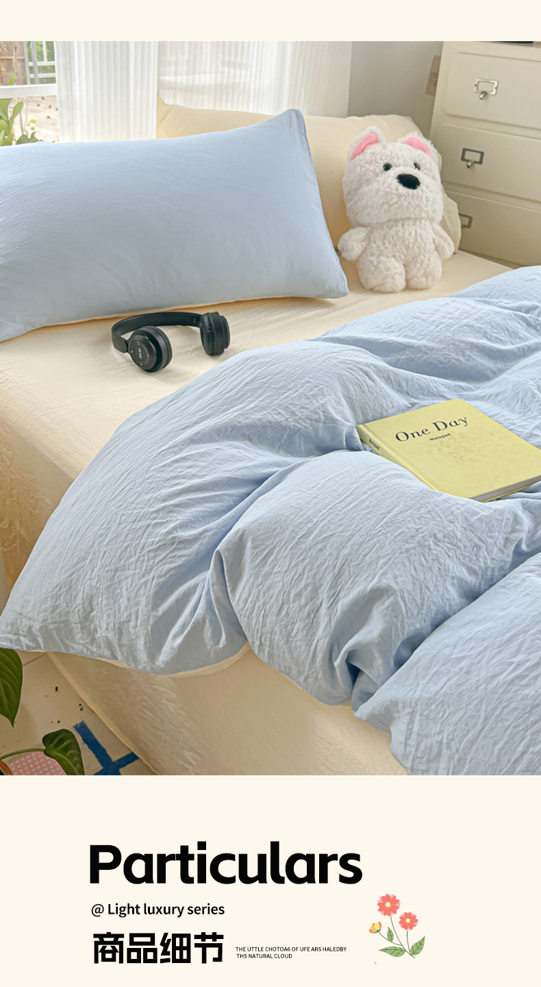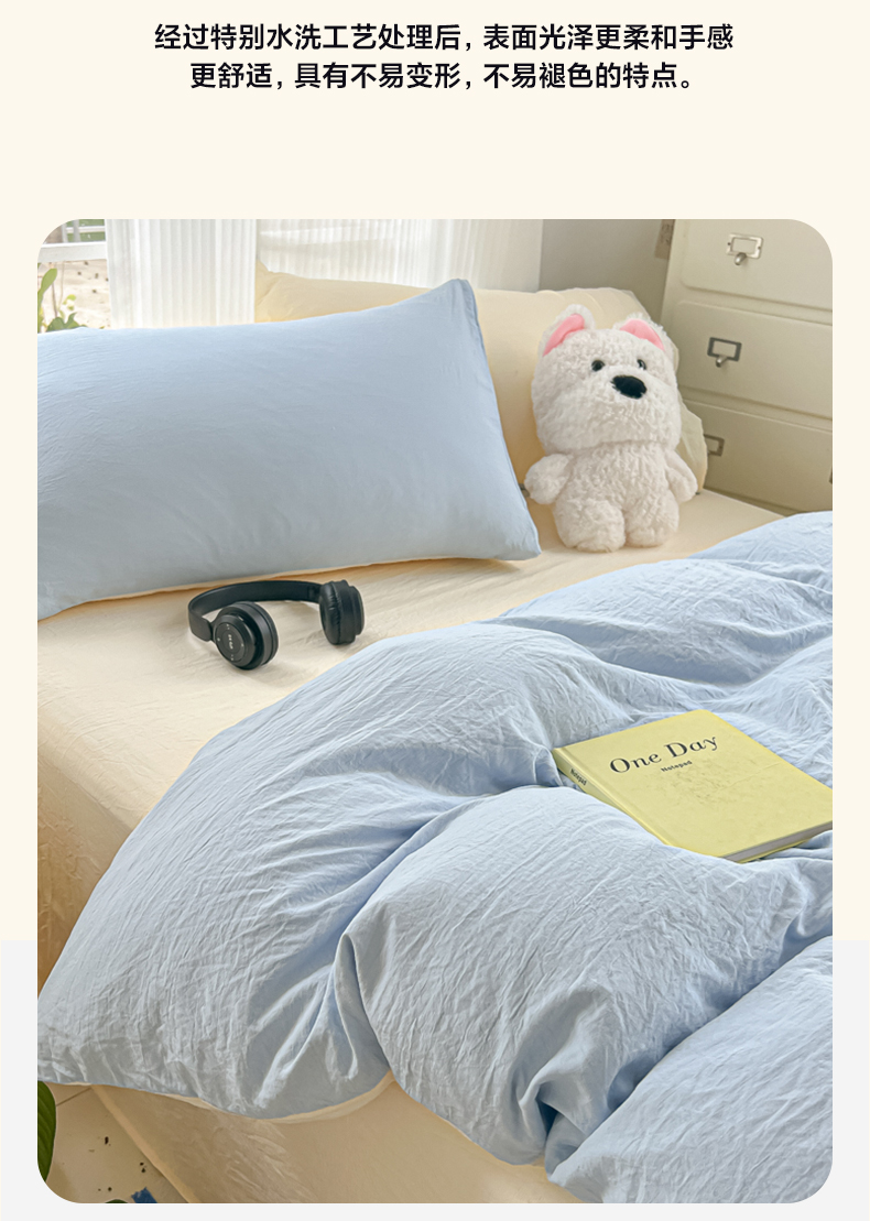 当前位置: 91家纺网 > 商品网购 > 床品套件 > 四件套 > 水洗棉四件套 > 韩巢家纺 2025新款ins风超柔水洗棉四件套-纯色双拼系列(提供卖家秀) 水洗棉浅蓝黄