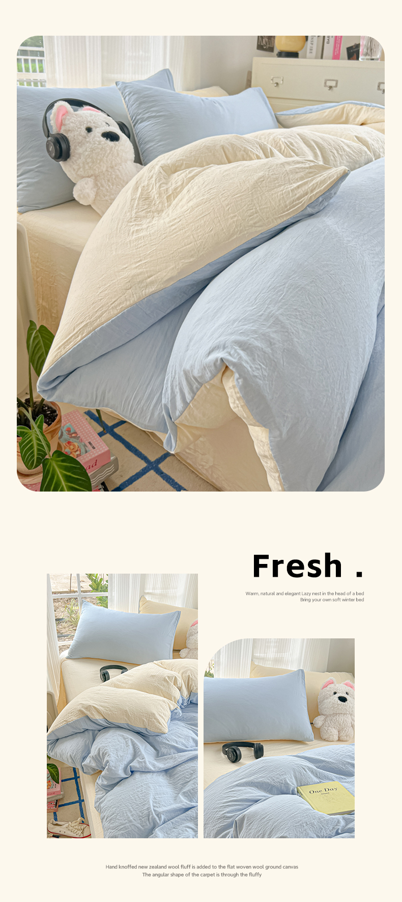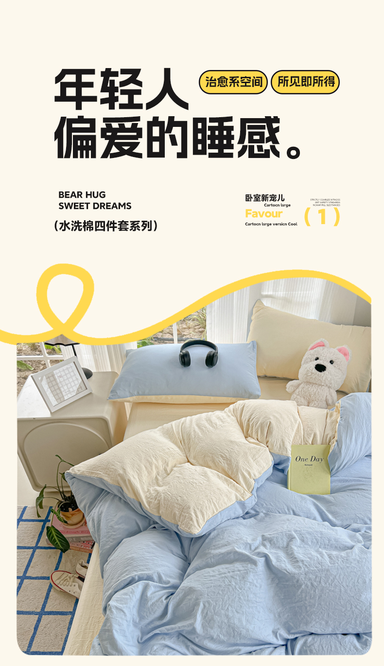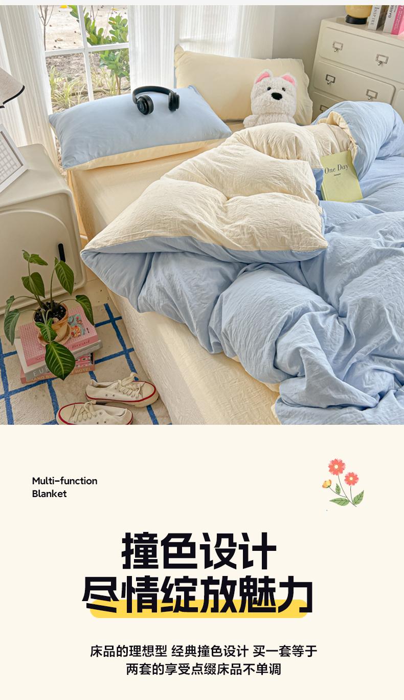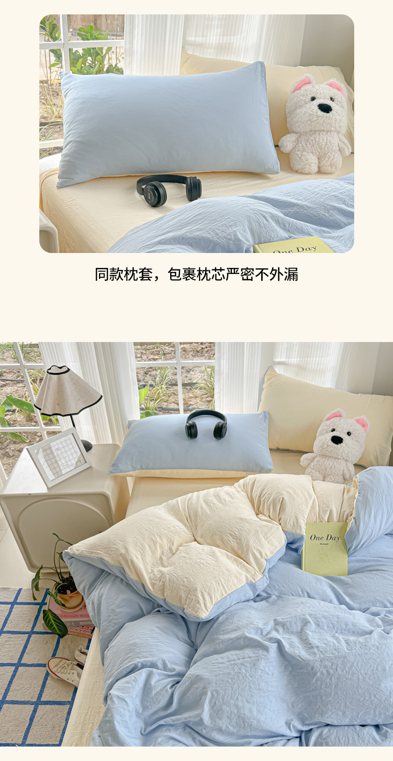 当前位置: 91家纺网 > 商品网购 > 床品套件 > 四件套 > 水洗棉四件套 > 韩巢家纺 2025新款ins风超柔水洗棉四件套-纯色双拼系列(提供卖家秀) 水洗棉浅蓝黄