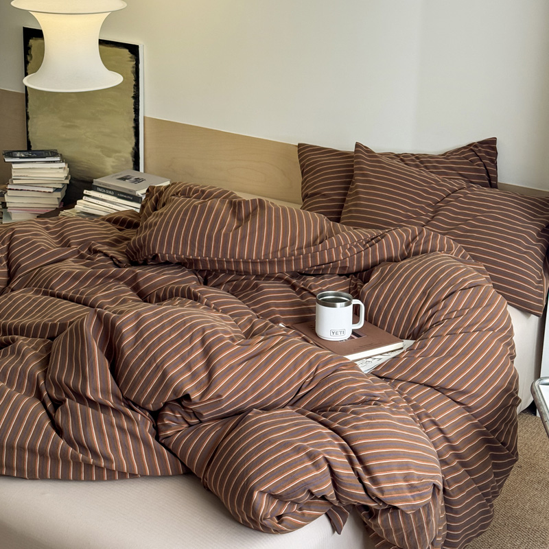 (总)艾沁家纺 2025新款全棉复古色织水洗棉四件套-栗子巧克力
