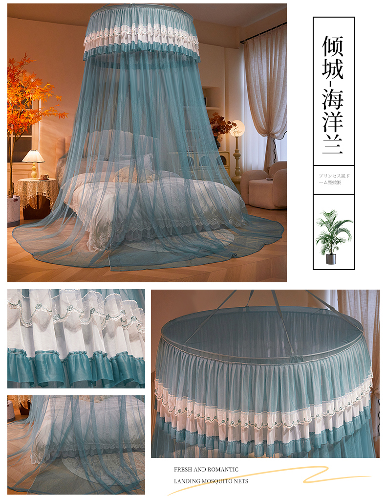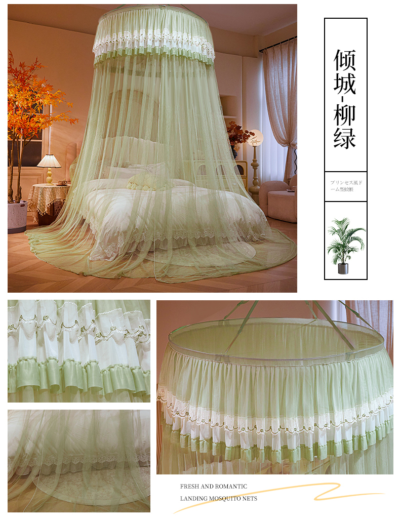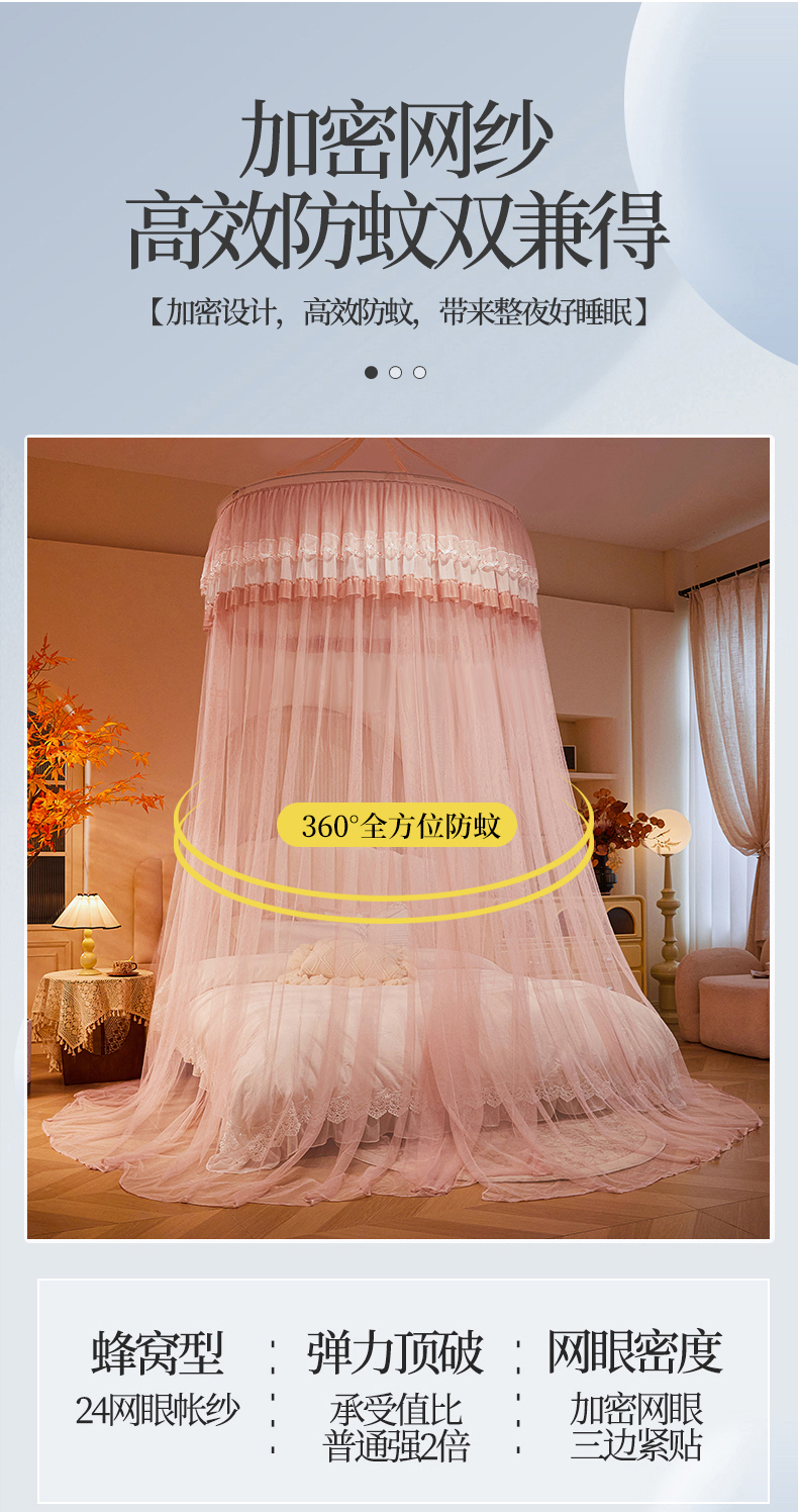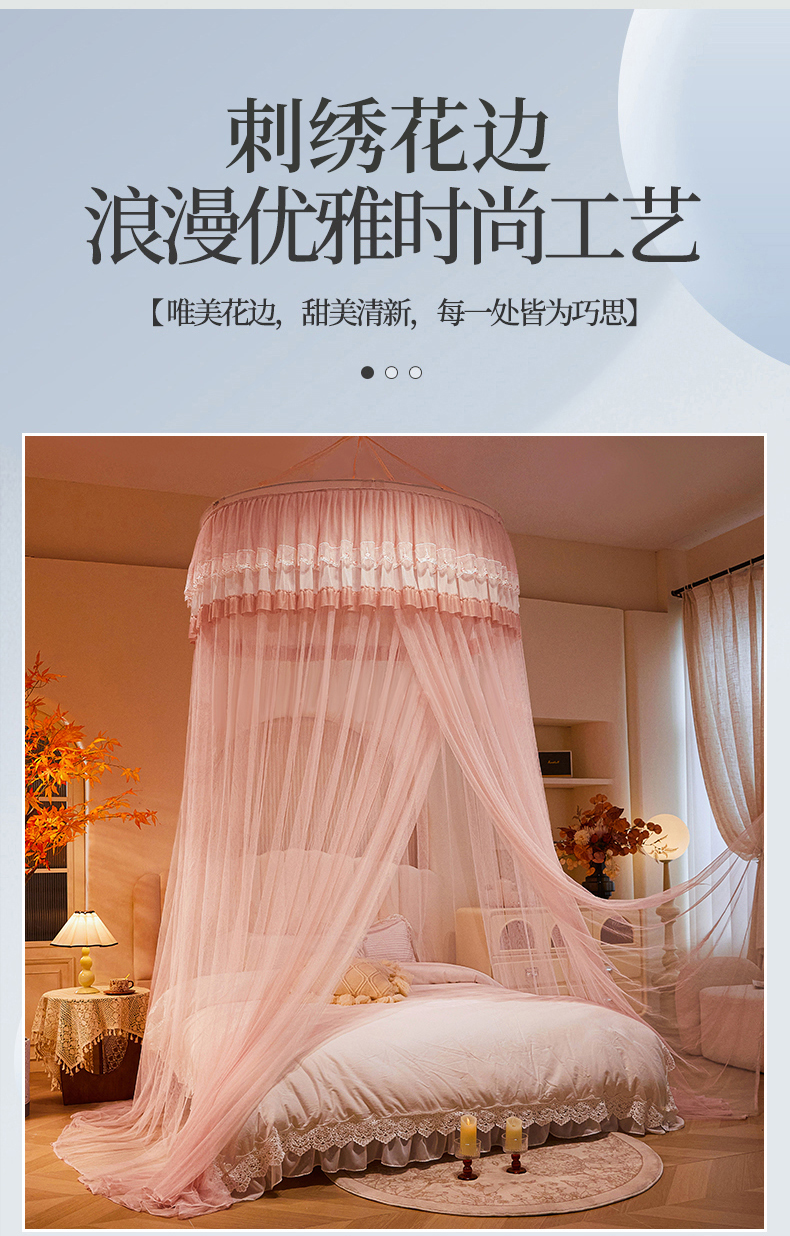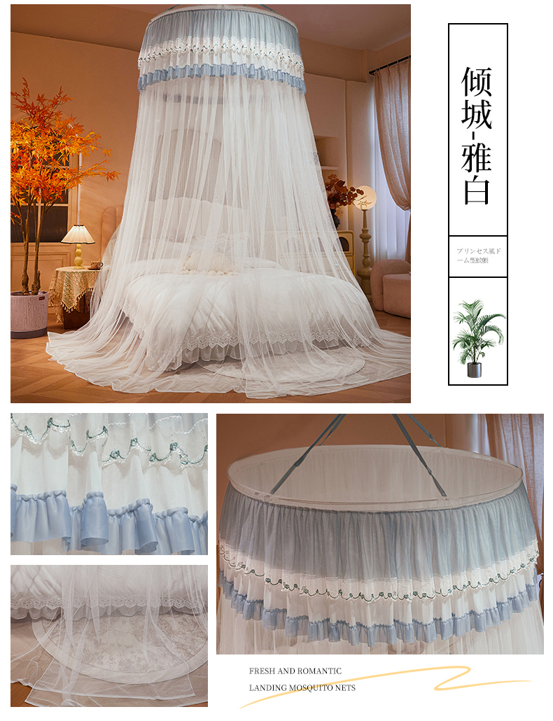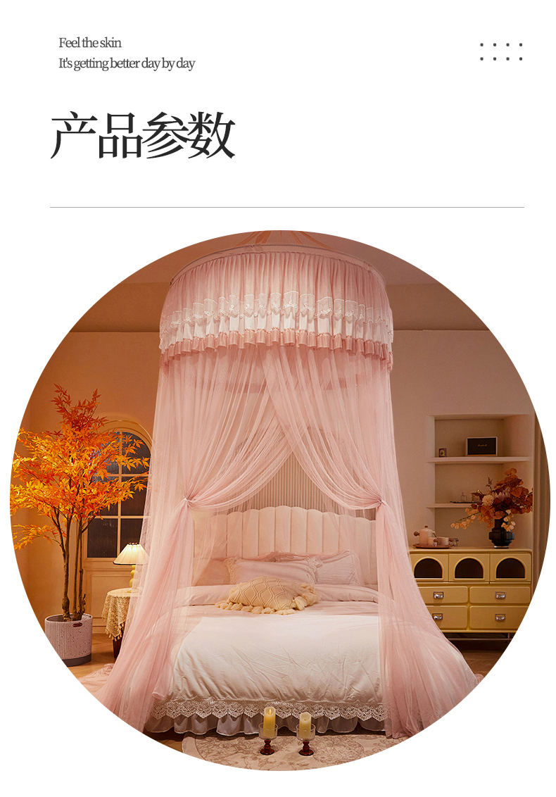 (总)雪姿家纺 2024新款唯美蕾丝圆顶蚊帐-颜汐,颜汐-暖玉,颜汐-雅白,颜汐-海洋兰,颜汐-抹茶绿,颜汐-胭脂粉,颜汐-时尚灰