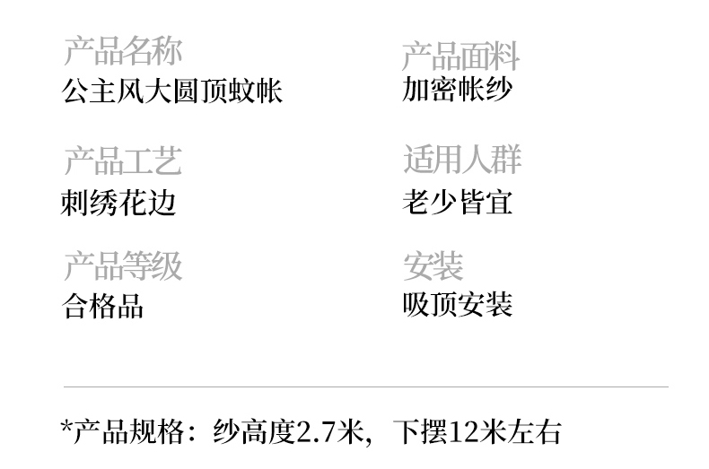 商品名称:(总)雪姿家纺 2025新款圆顶公主风落地蚊帐-倾城