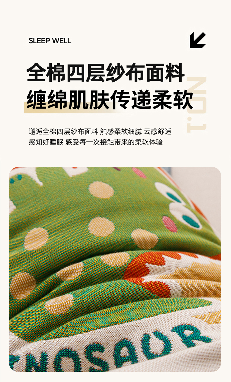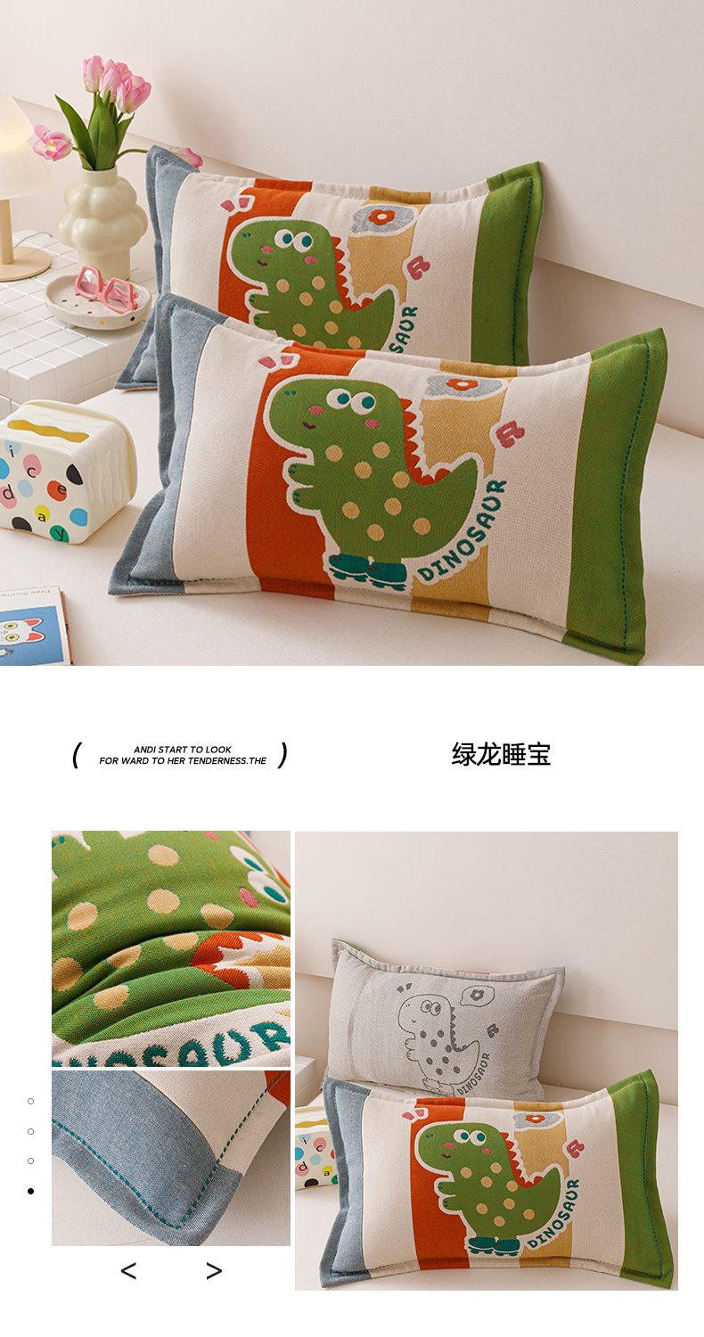商品名称:悦然毛巾被 2025新款全棉四层纱布儿童枕套 绿龙睡宝