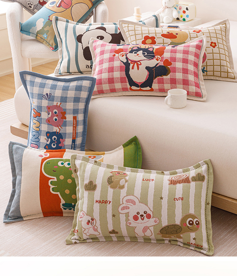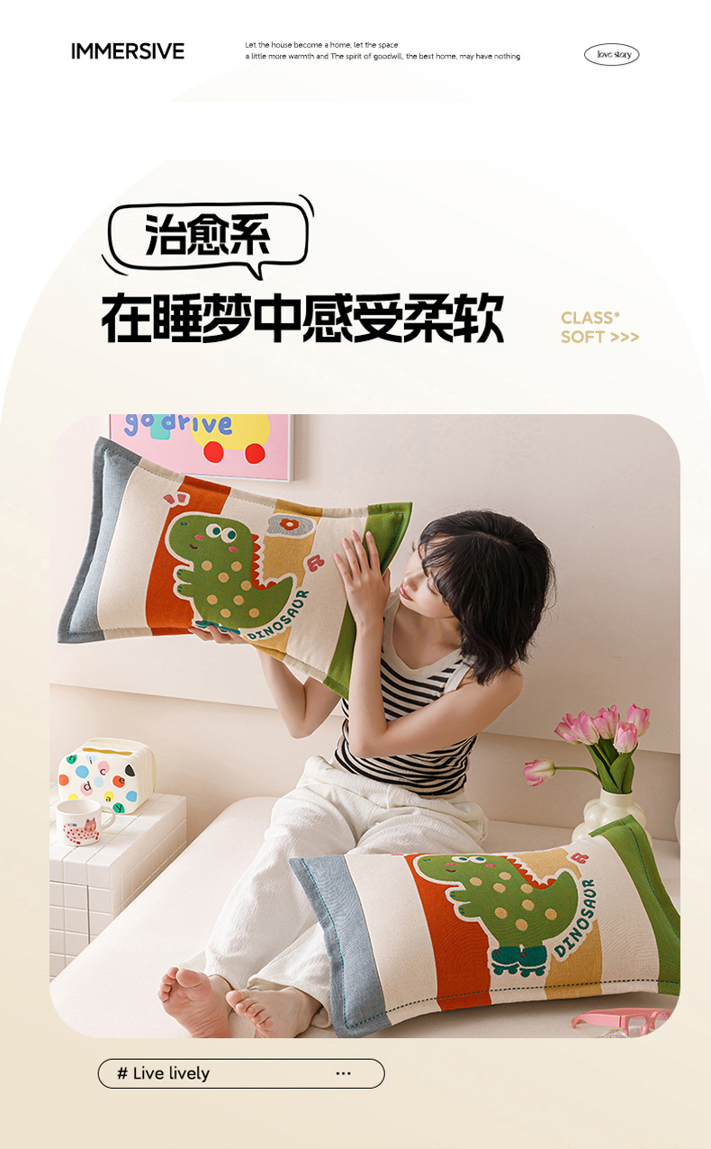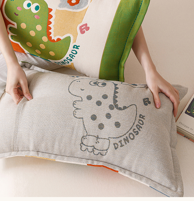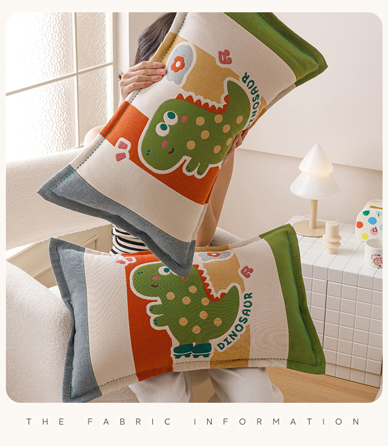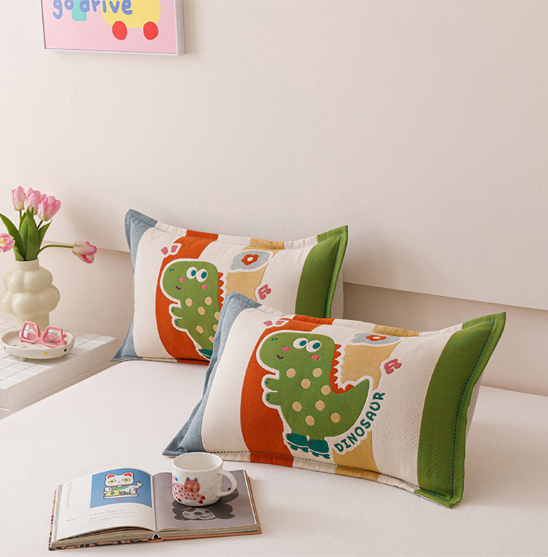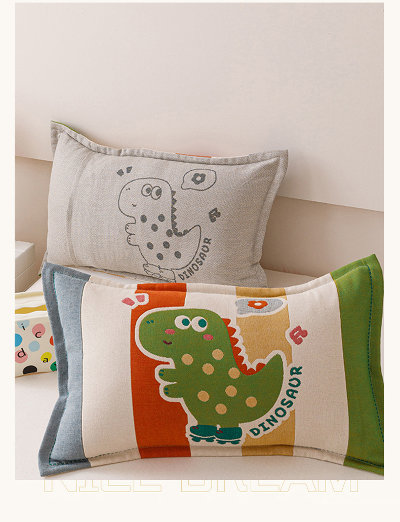 悦然毛巾被 2025新款全棉四层纱布儿童枕套 绿龙睡宝