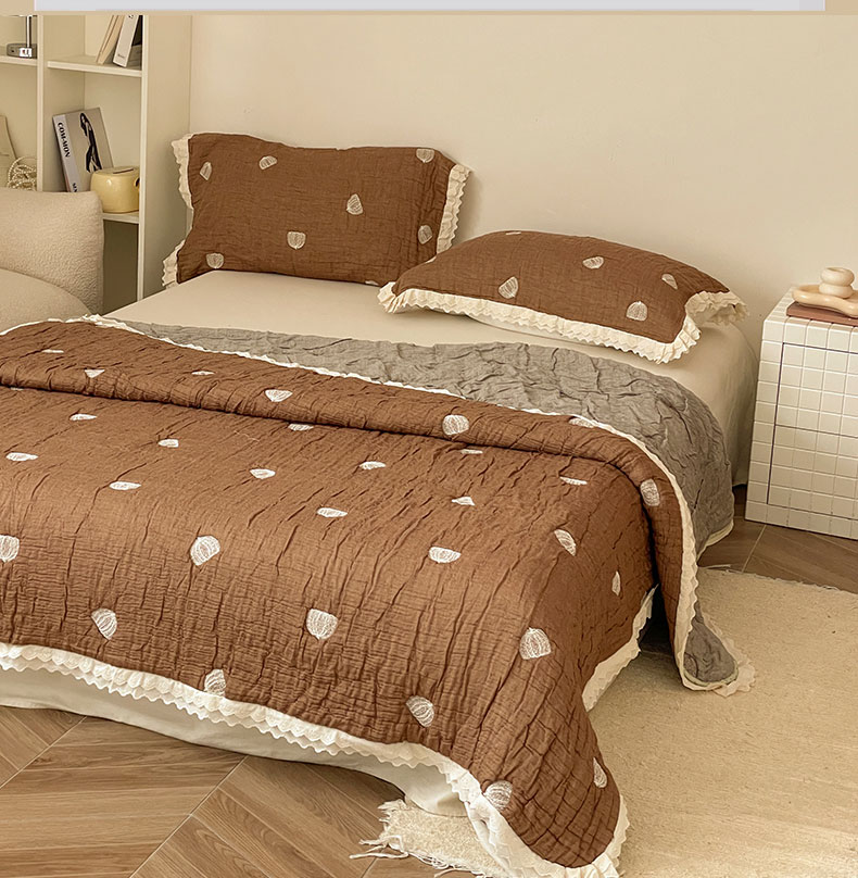 (总)麻依 2025新款韩国清新全棉纱布床盖三件套,憨憨熊,彩色南瓜,车厘子,两颗草莓,奶盖KT,奶油波点-灰,奶油彩点,水蓝KT,水墨花,丝带,桃心-米白,小猫鱼