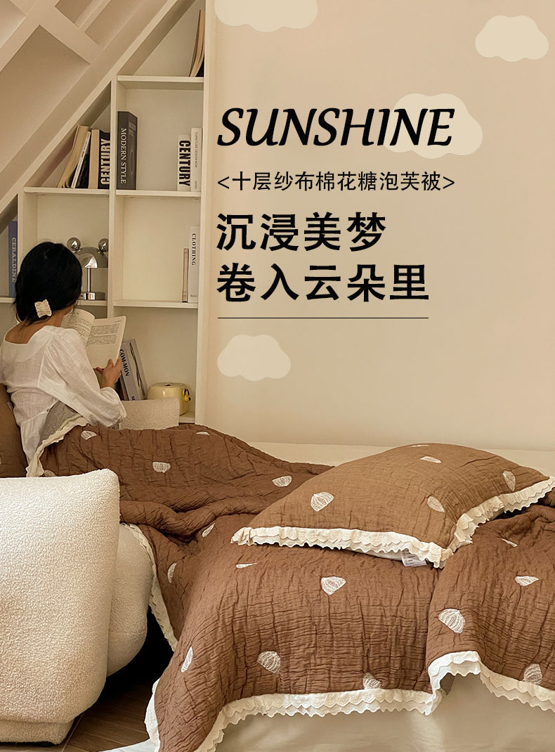 (总)麻依 2025新款十层纱布棉花糖春秋被被子泡芙被,抱抱熊,点点-白,点点-灰,花影-粉,花影-米,墨心,奶油草莓,帕帕熊,牵手小熊,生日腊肠狗,甜甜圈小熊,小蝴蝶结,小南瓜,小柿子,樱桃香