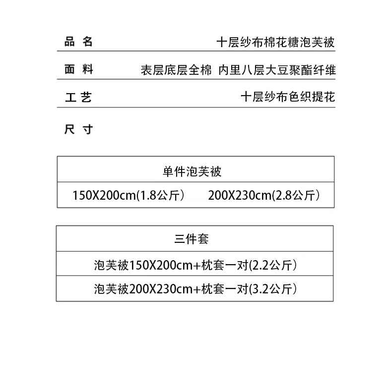 商品名称:麻依 2025新款十层纱布棉花糖春秋被被子泡芙被 小南瓜