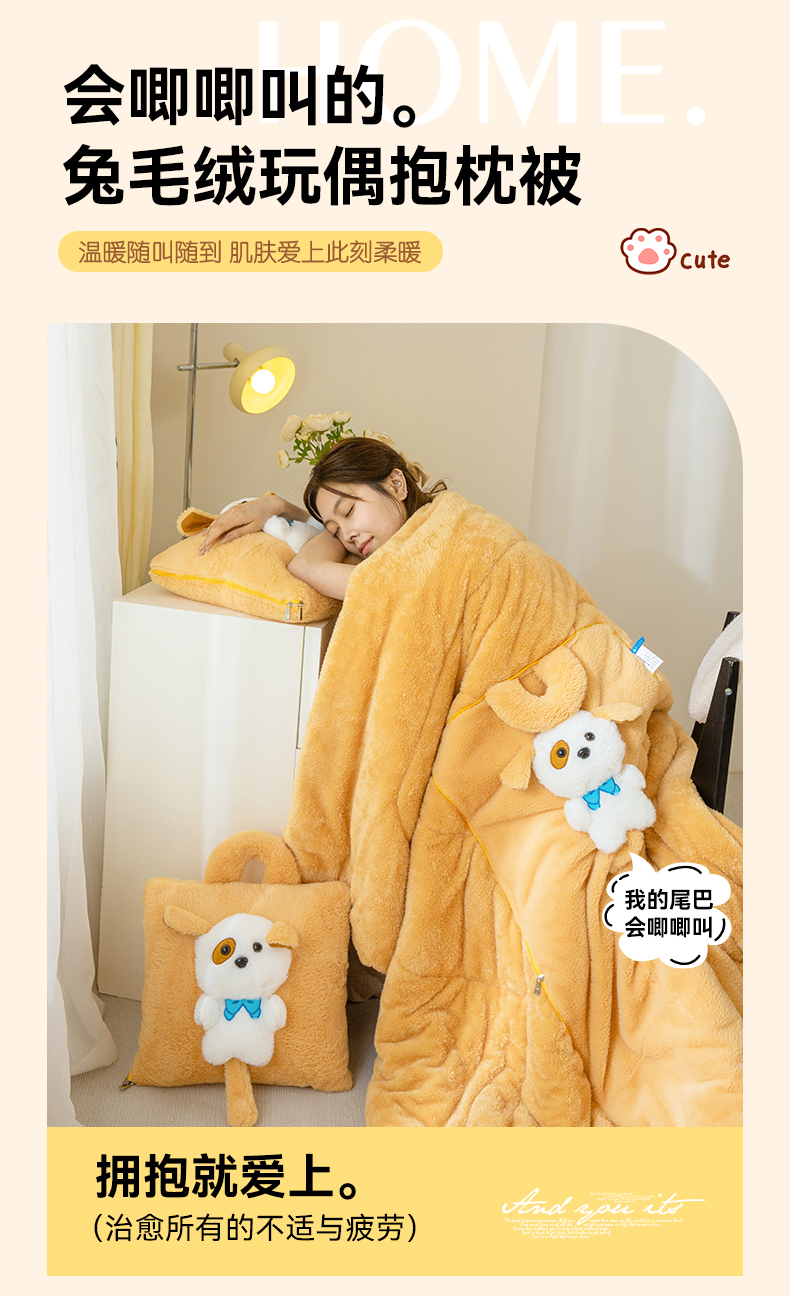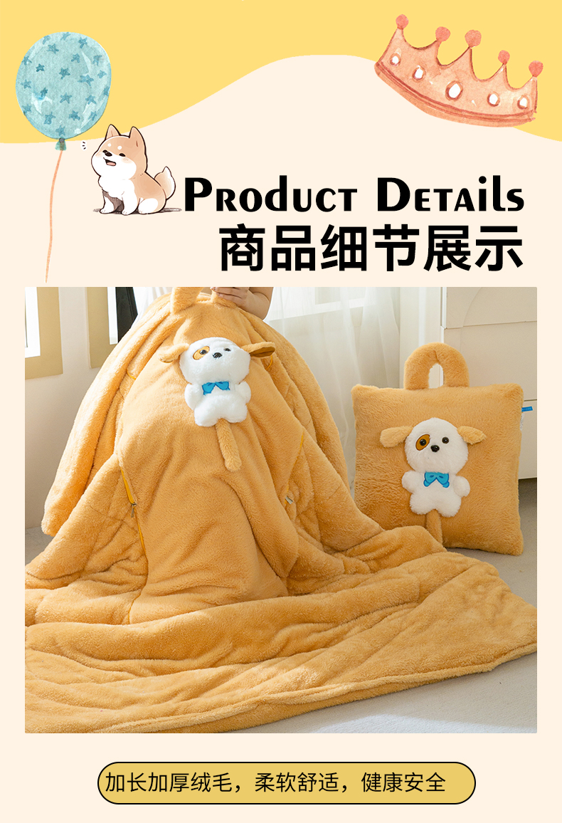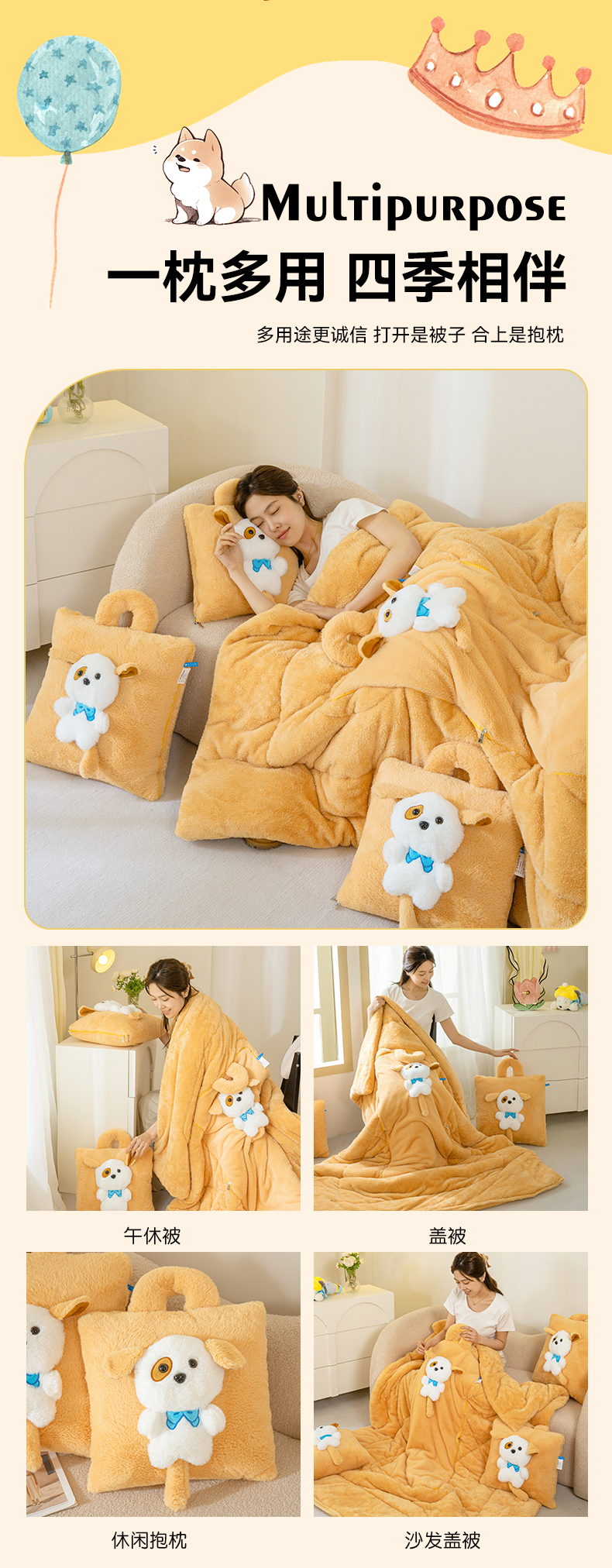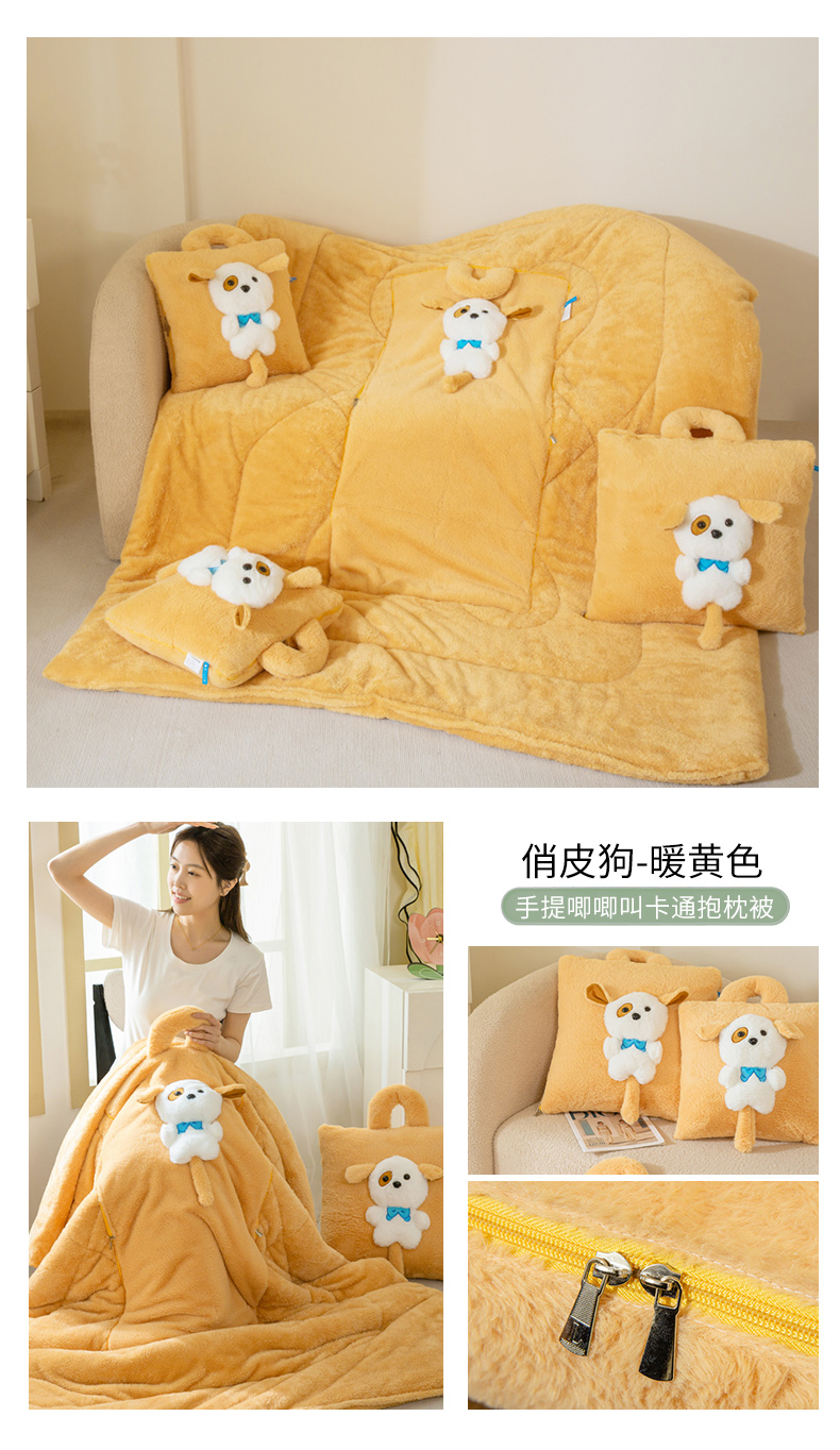 商品名称:2025新款手提唧唧叫卡通抱枕被 俏皮狗-暖黄色