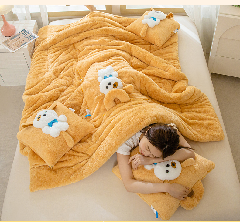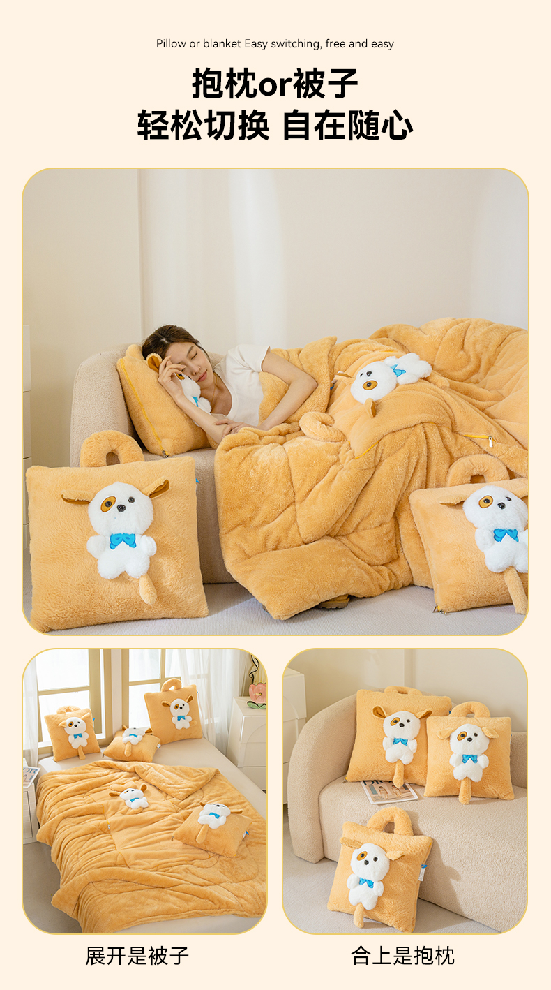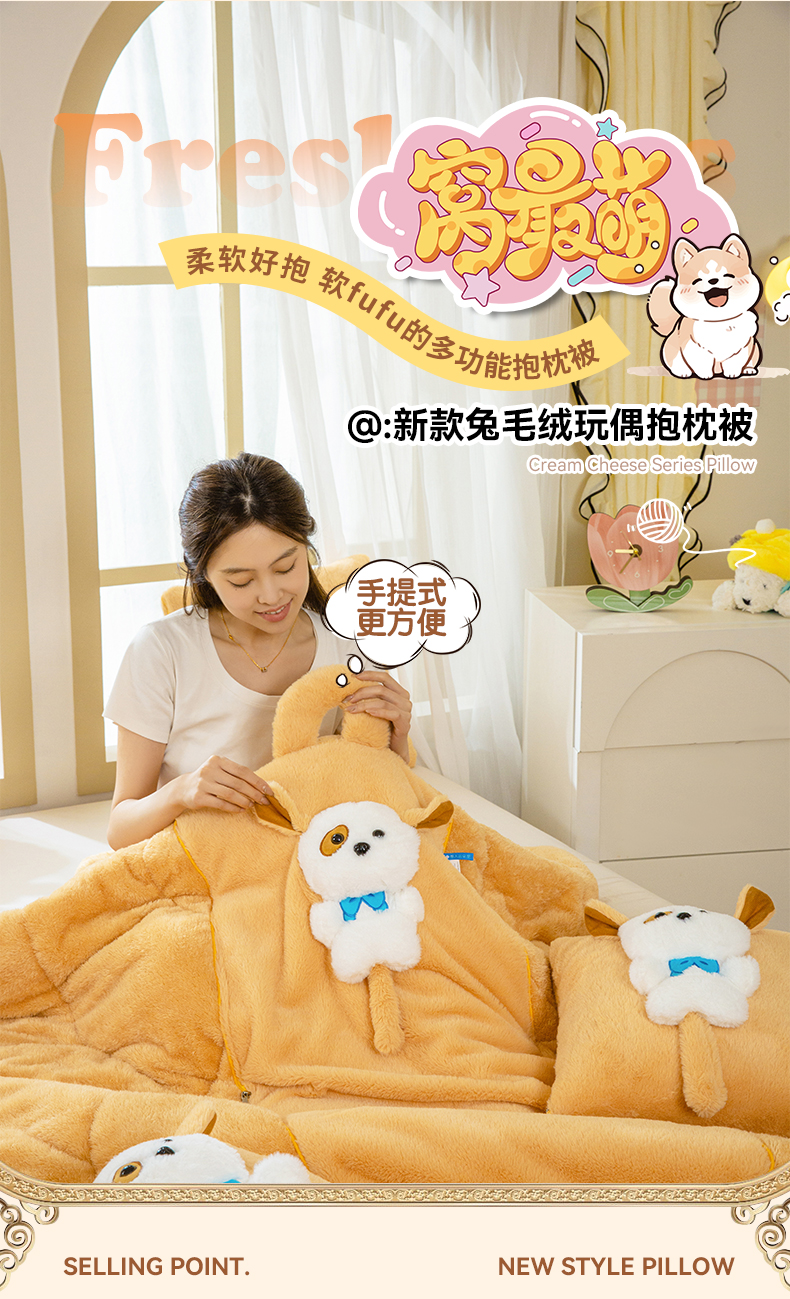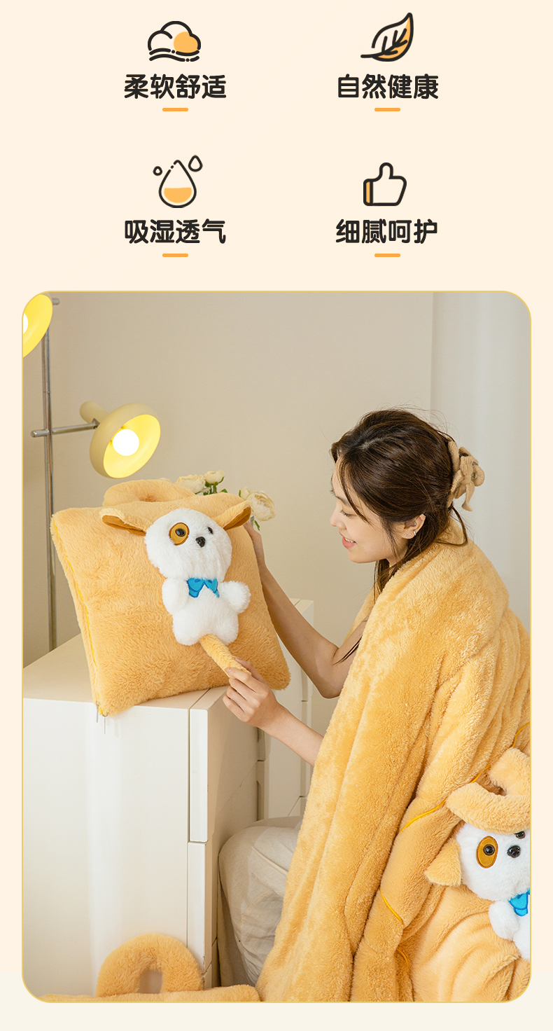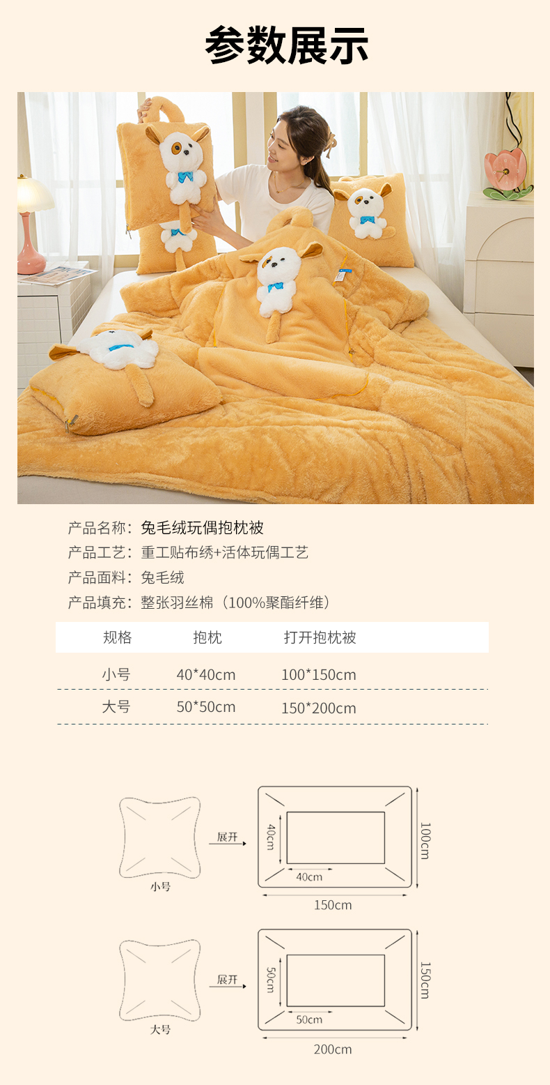 商品名称:2025新款手提唧唧叫卡通抱枕被 俏皮狗-暖黄色