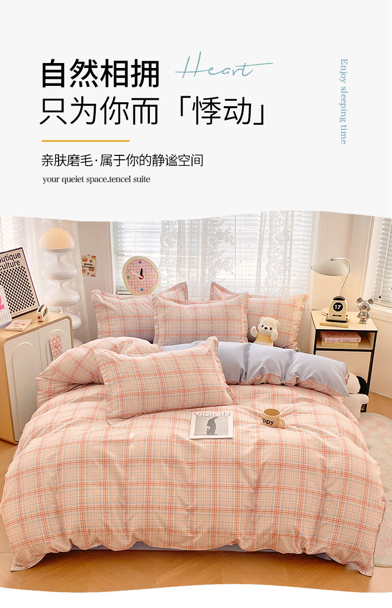 (总)世爵 2026新款10A抗菌亲肤水洗棉双拼四件套,卡其蓝,绿浅灰,墨松灰,暖驼,浅灰,深灰,深灰绿,深蓝灰,天空蓝浅灰,远山绿,远天蓝