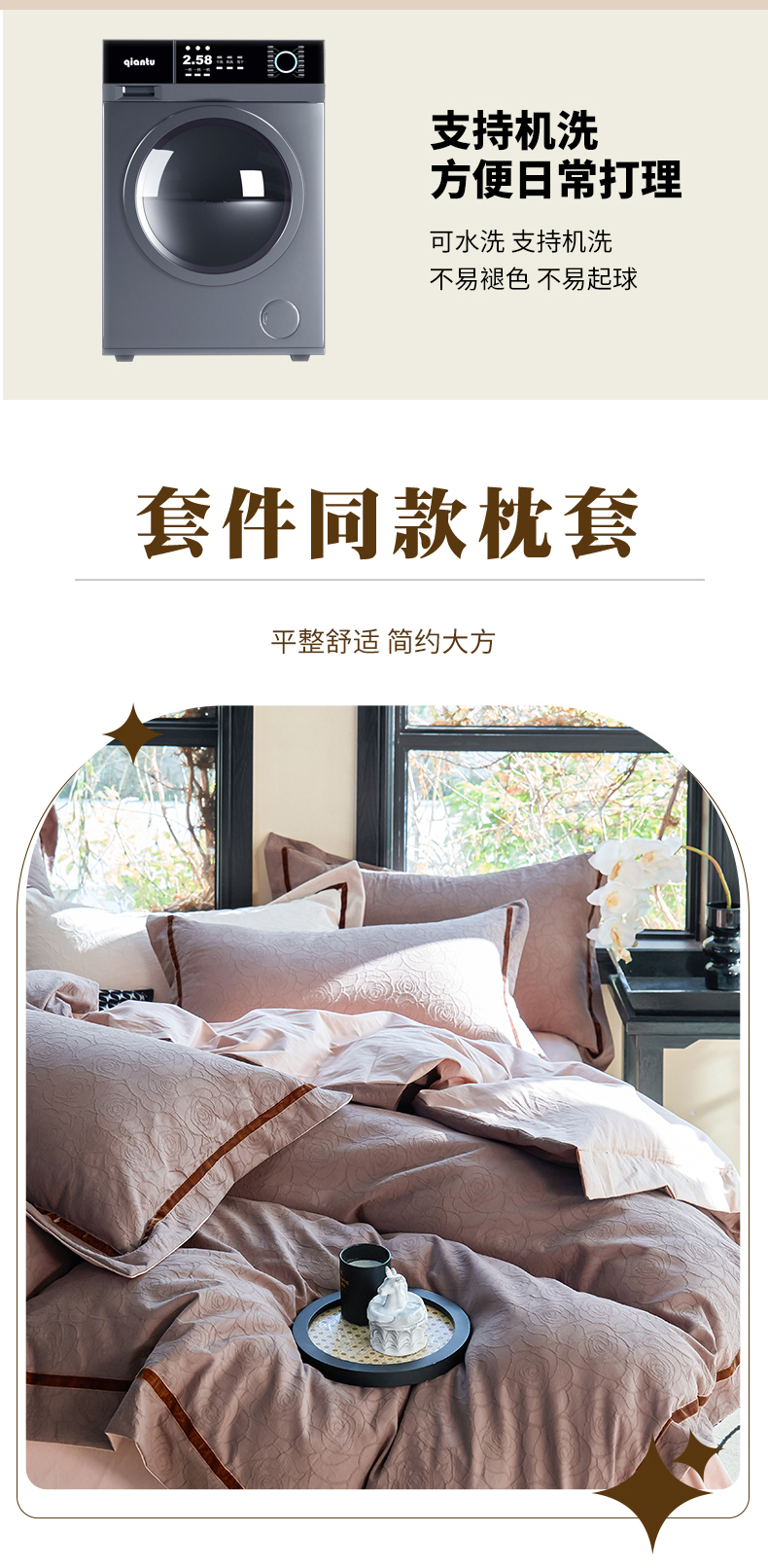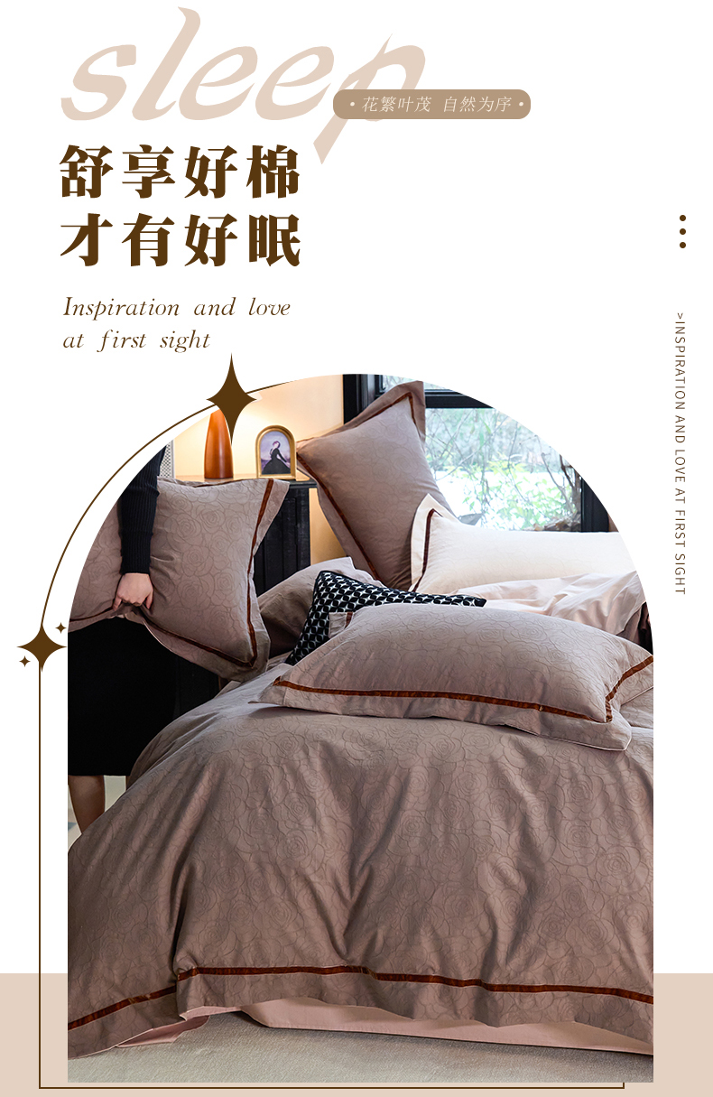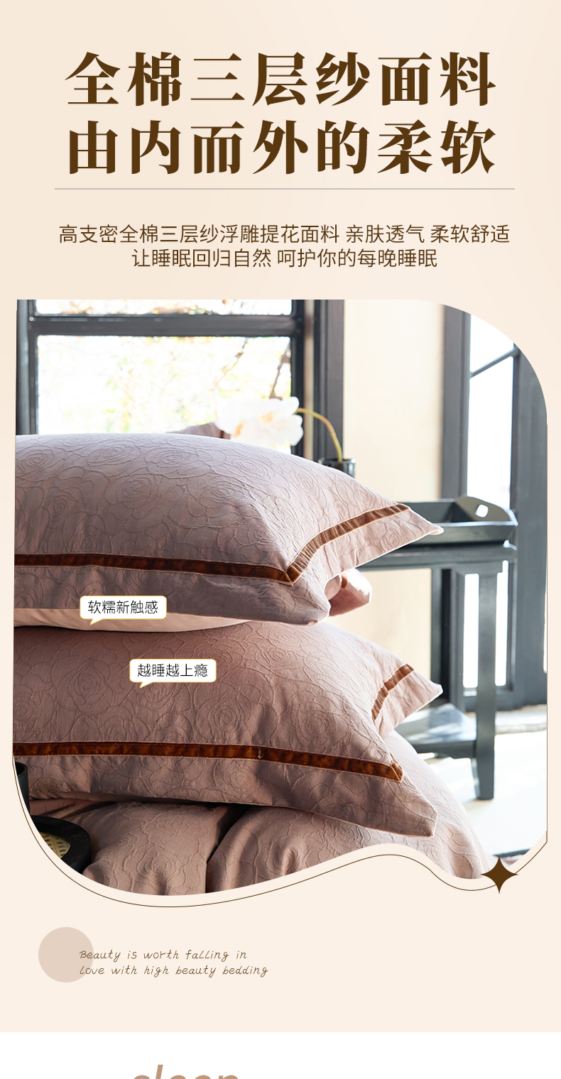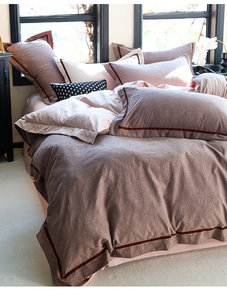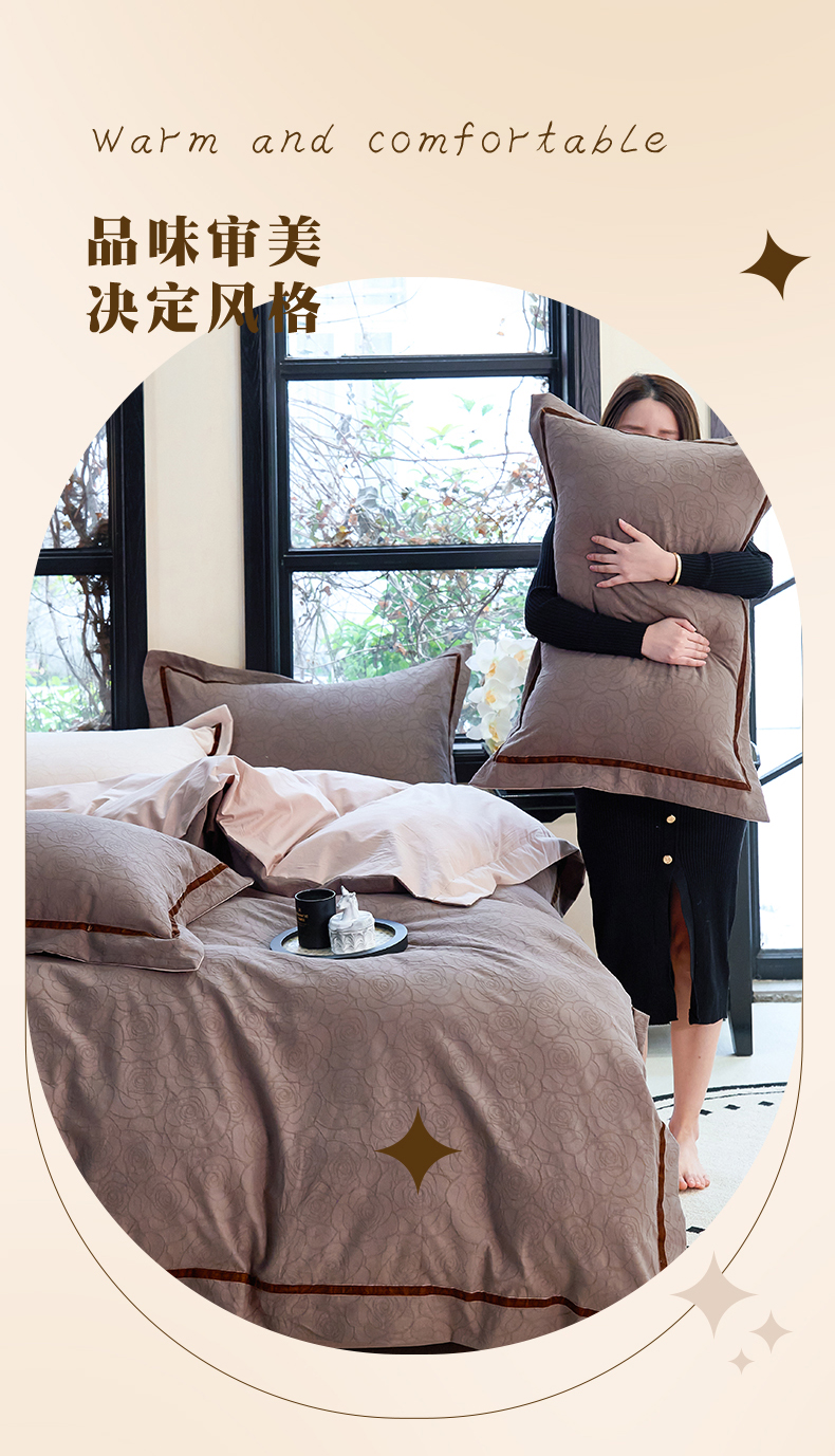 当前位置: 91家纺网 > 商品网购 > 床品套件 > 四件套 > 提花四件套 > 久典家居 2025新款三层纱浮雕大提花织带贴边款四件套 玫瑰—咖