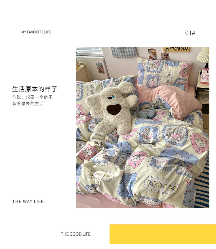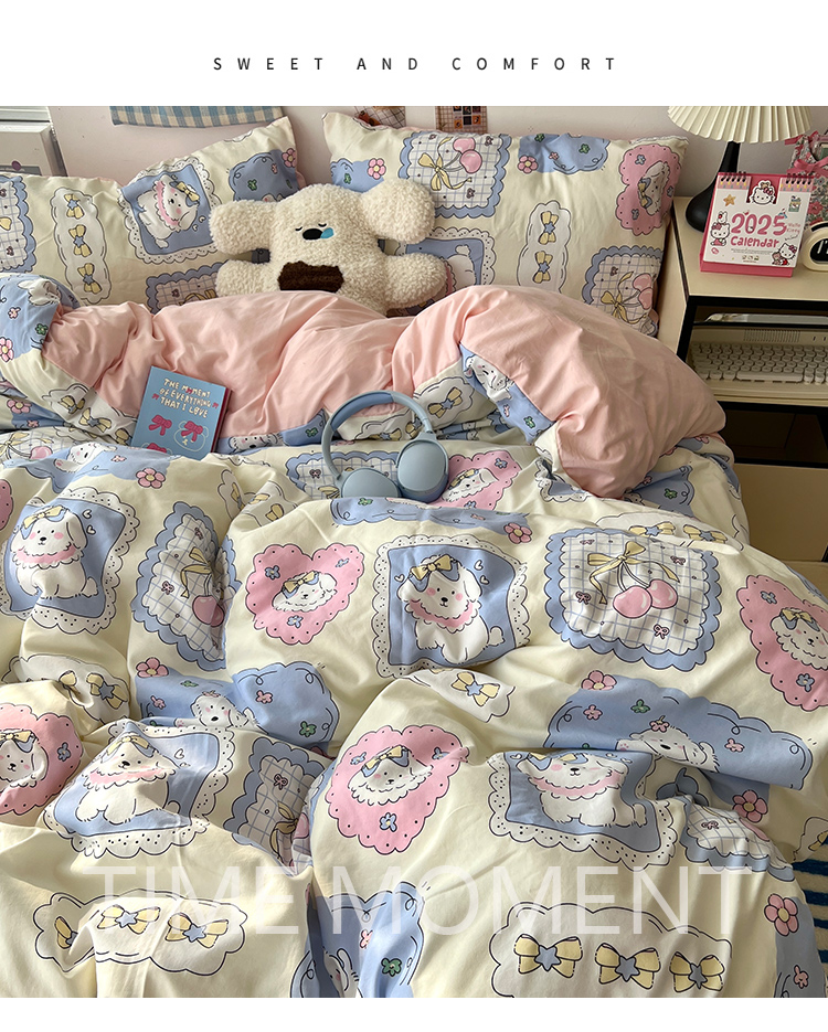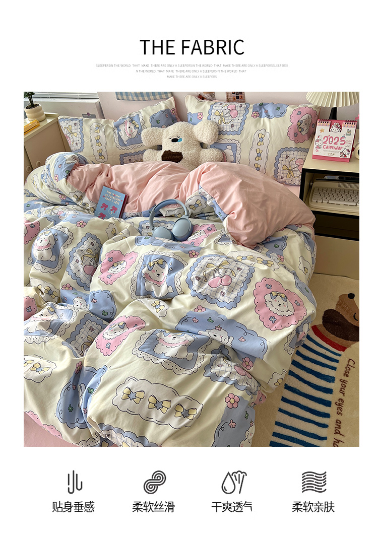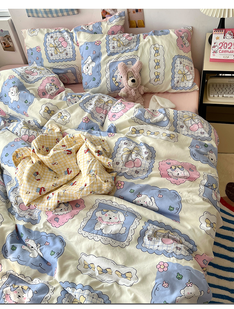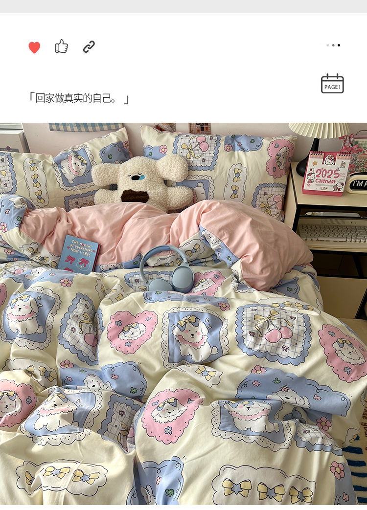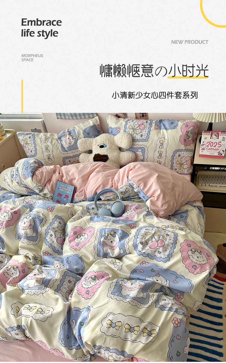 当前位置: 91家纺网 > 商品网购 > 床品套件 > 四件套 > 其它四件套 > 原素 2025软绵绵的双拼印花水洗棉四件套 萌狗格子铺