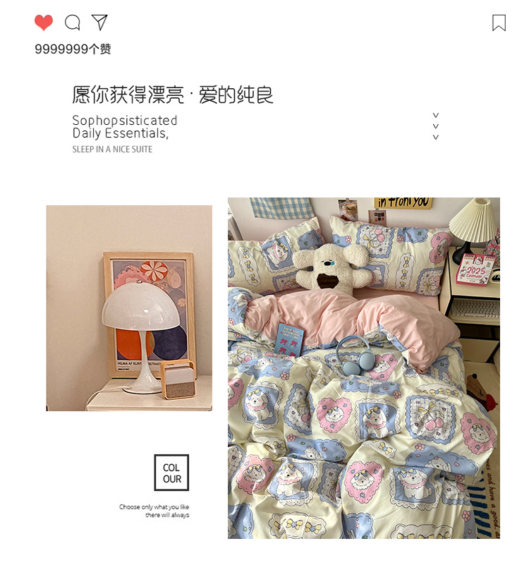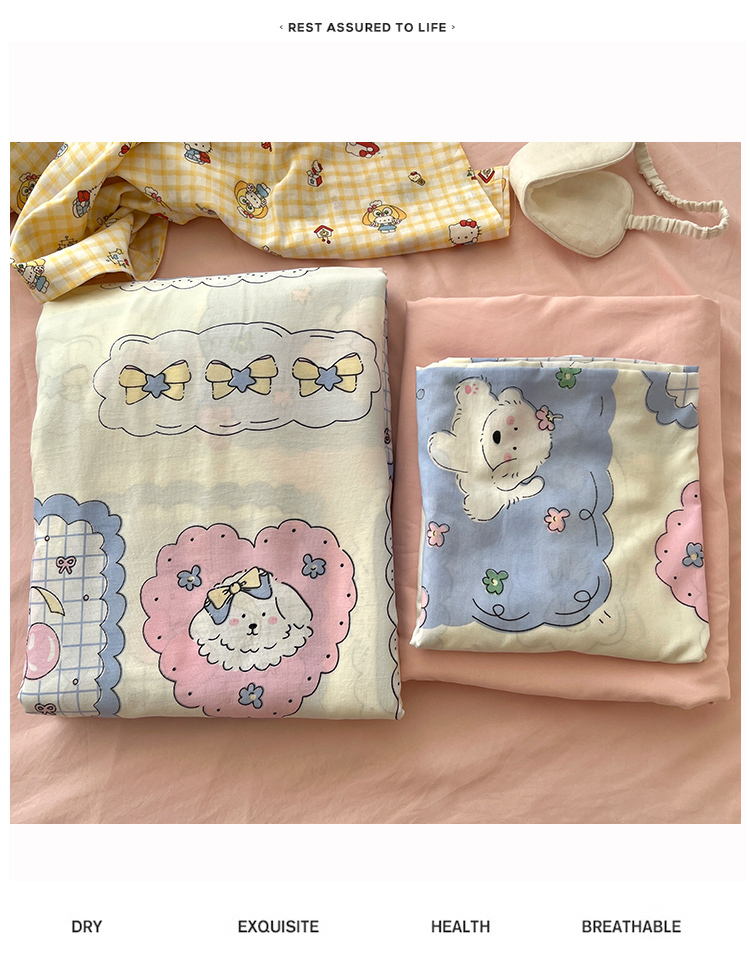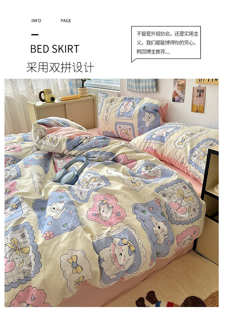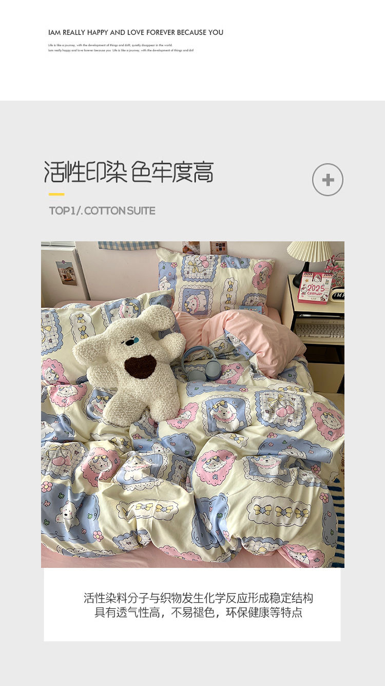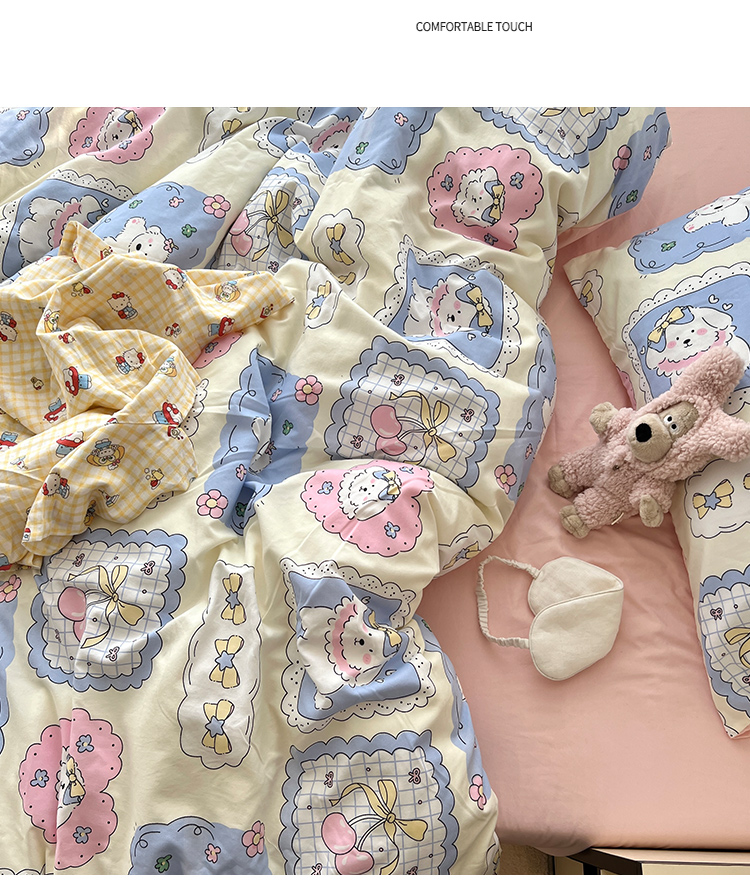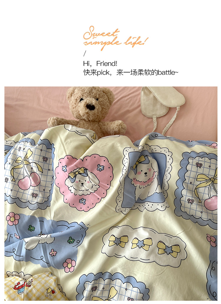 当前位置: 91家纺网 > 商品网购 > 床品套件 > 四件套 > 其它四件套 > 原素 2025软绵绵的双拼印花水洗棉四件套 萌狗格子铺
