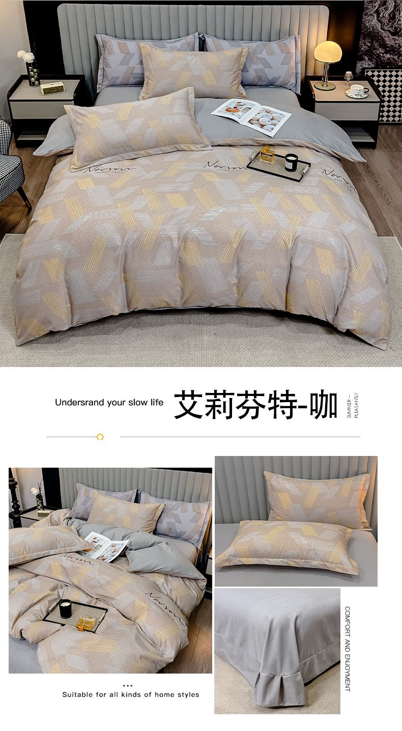 喜四方 2024新款全棉磨毛纯棉印花四件套 艾莉芬特-咖