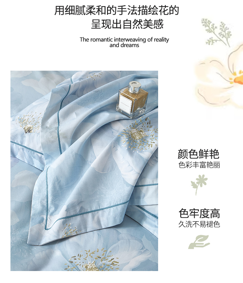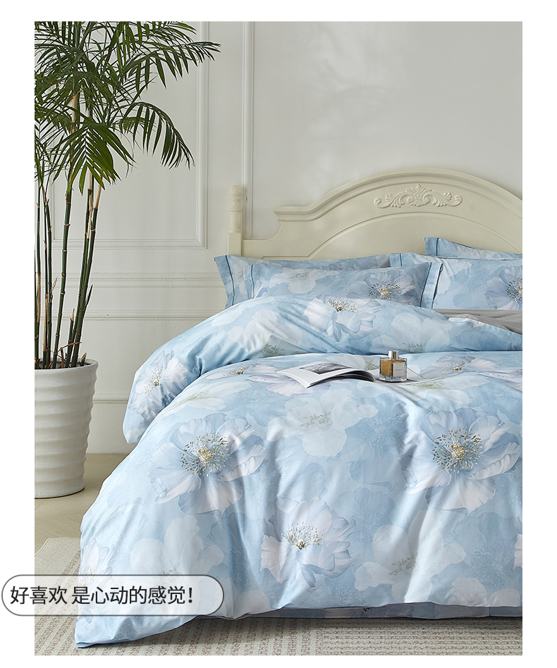 商品名称:曼秀琳 2025新款铂金棉数码印花四件套(全棉133*76) 水榭听香-兰