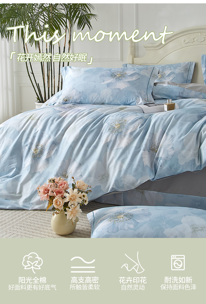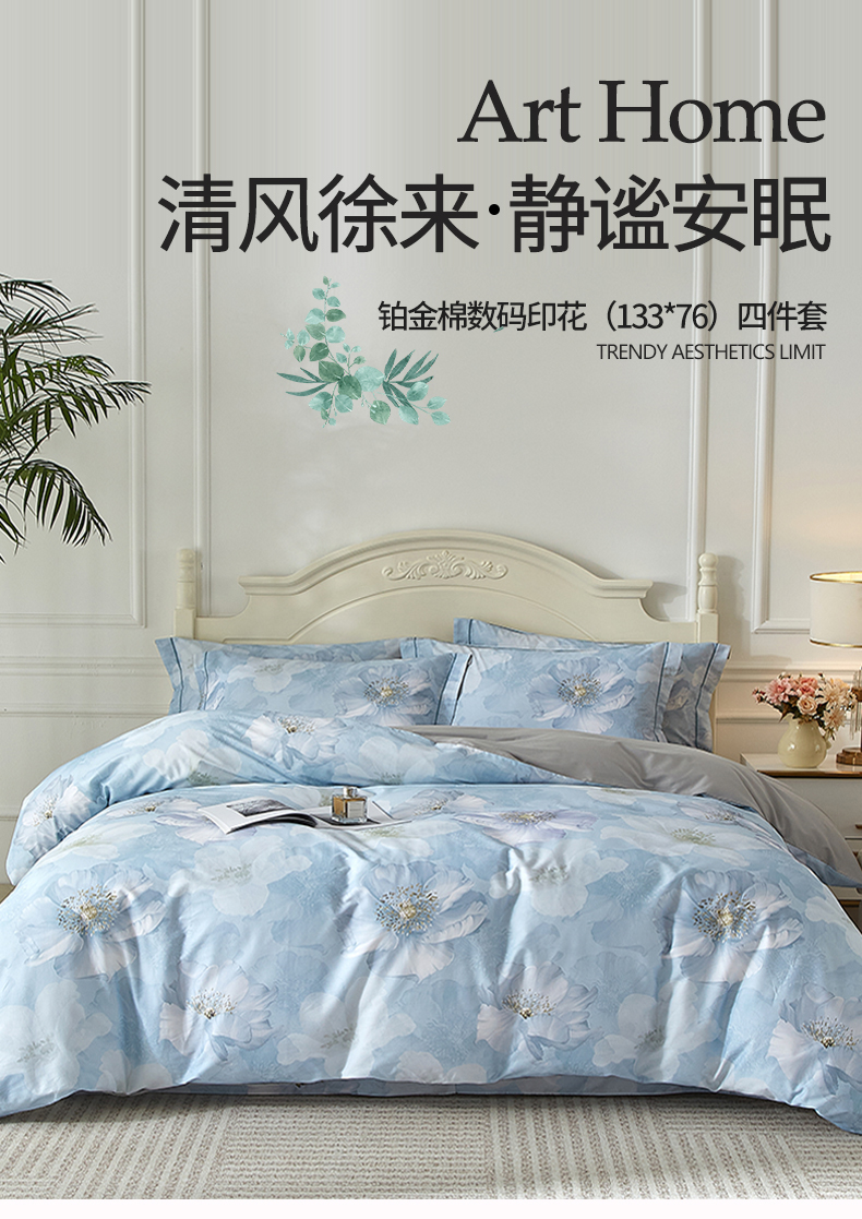 曼秀琳 2025新款铂金棉数码印花四件套(全棉133*76) 水榭听香-兰