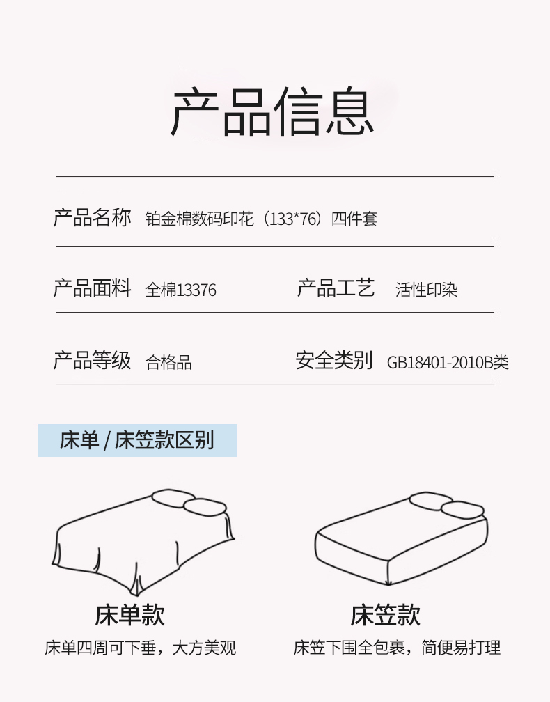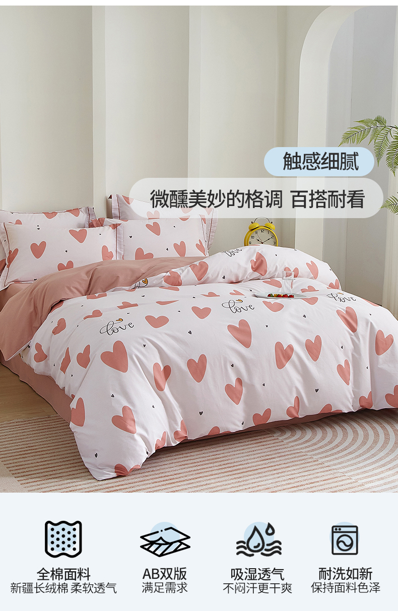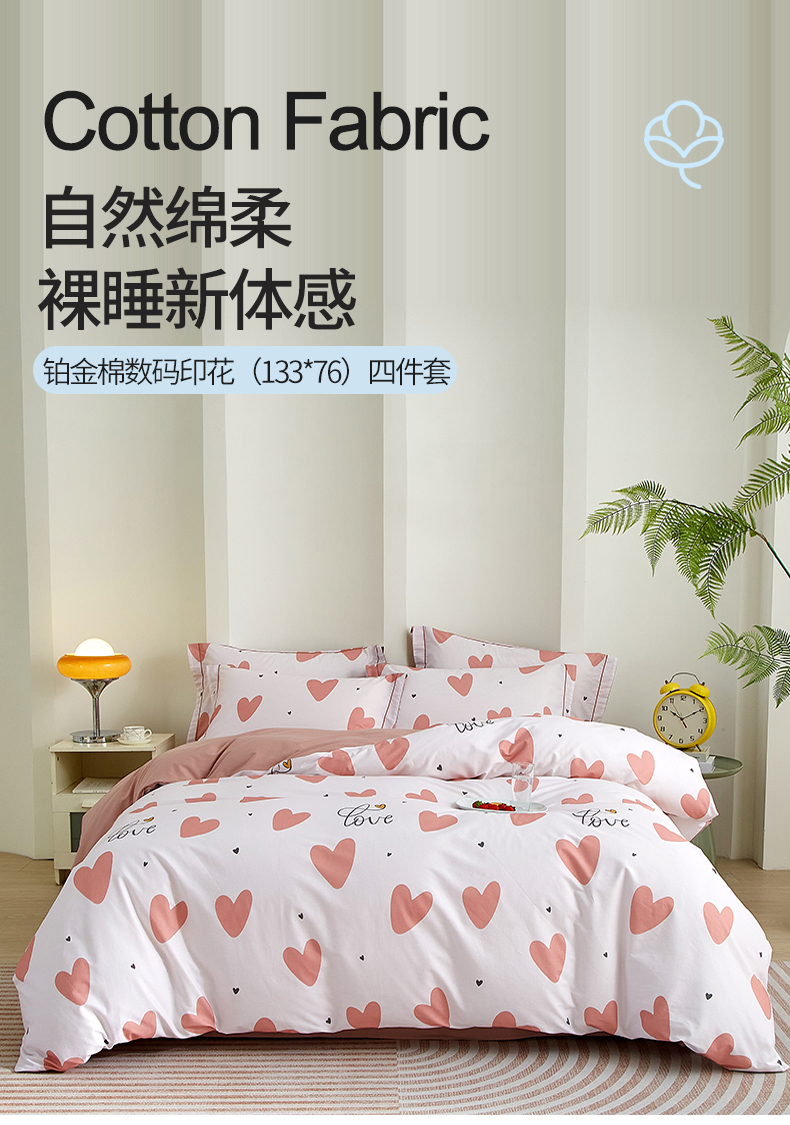 商品名称:曼秀琳 2025新款铂金棉数码印花四件套(全棉133*76) 臻爱-粉