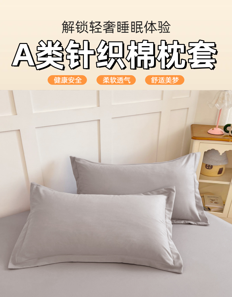 商品名称:梦舒羽 2025新款针织棉双层纱枕头套双人枕套枕芯套宿舍单人枕头内胆套 浅灰
