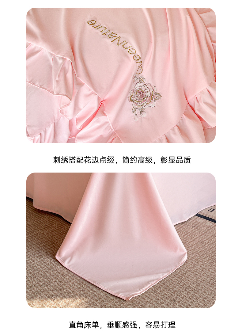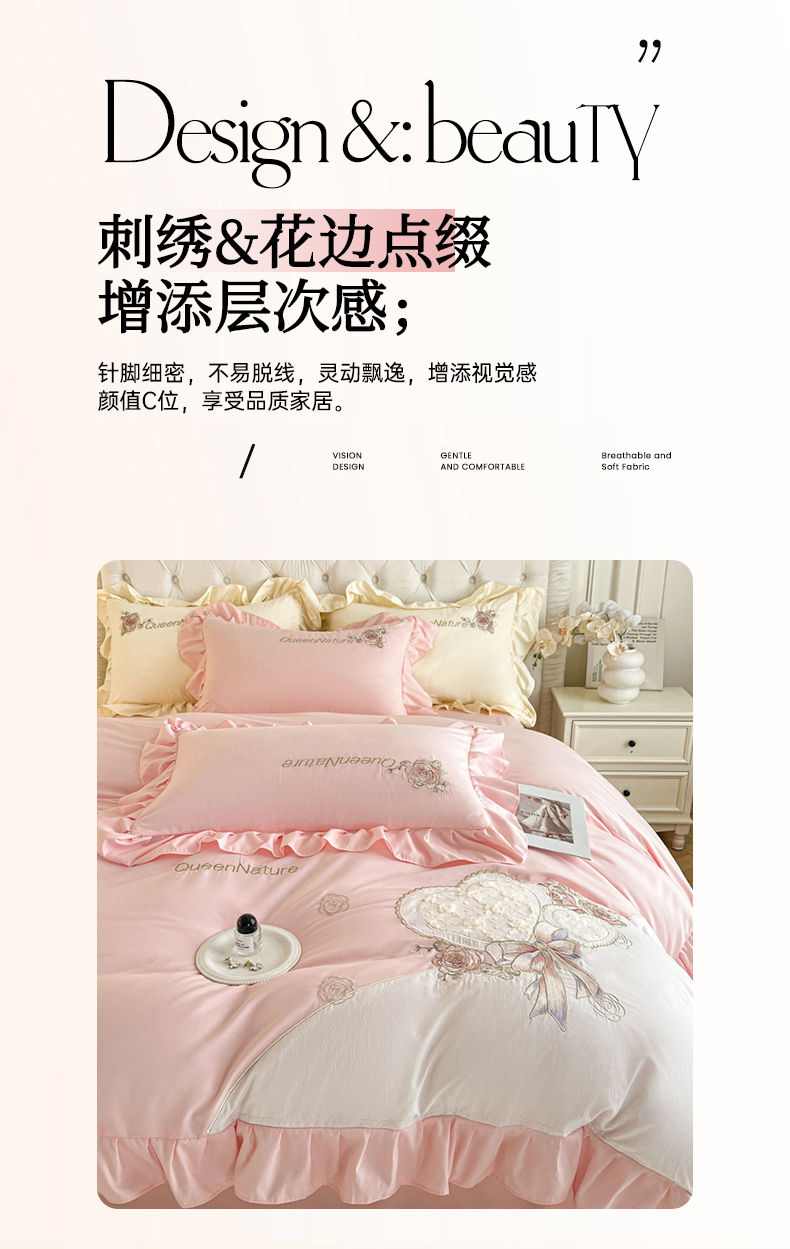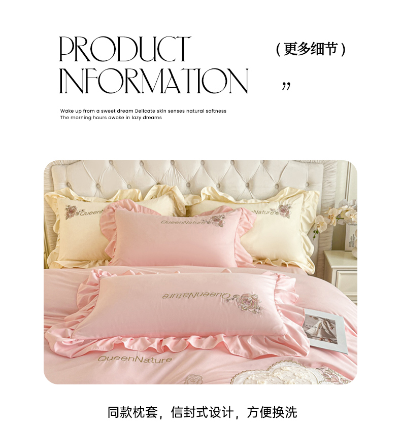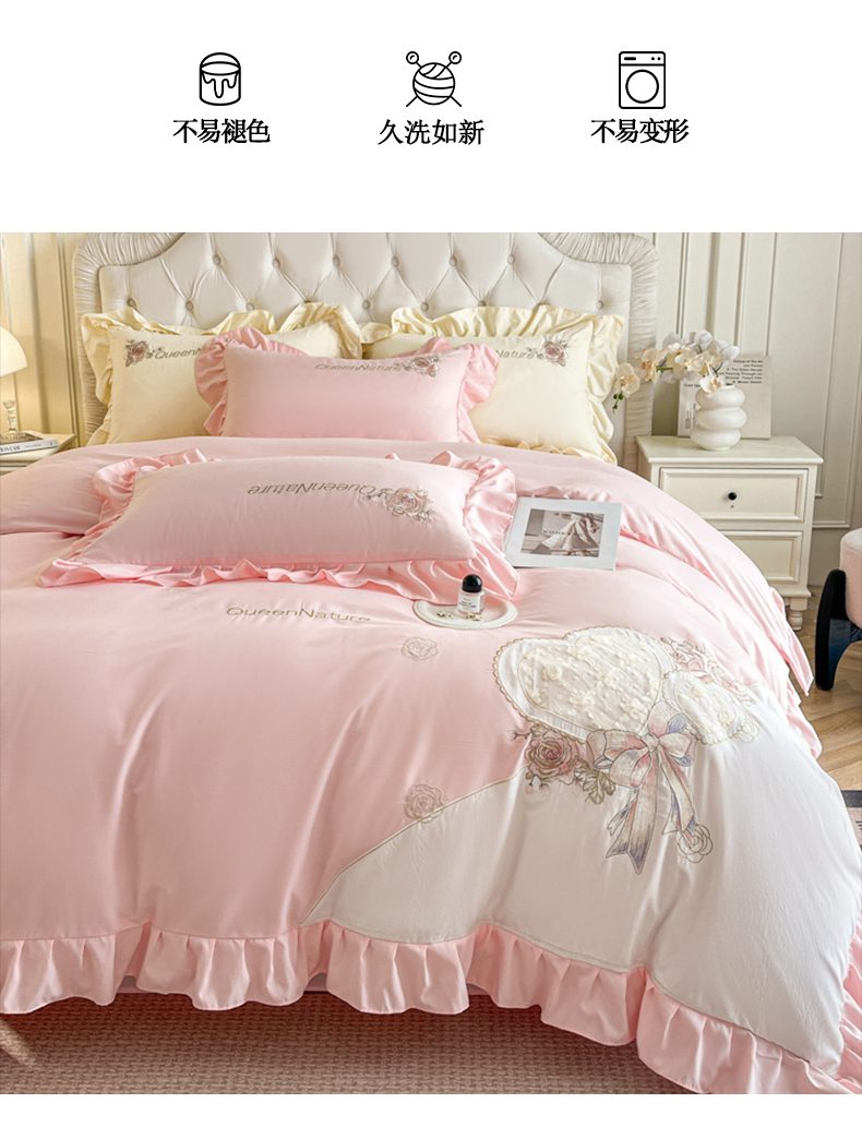 商品名称:七七家纺 2025新款水洗棉刺绣四件套梦见系列 梦见粉