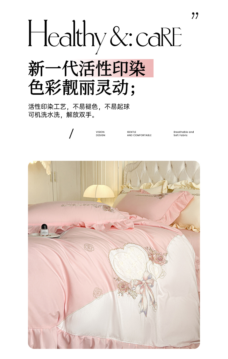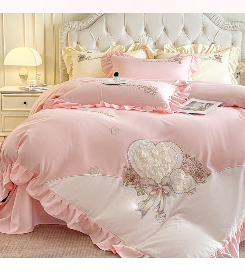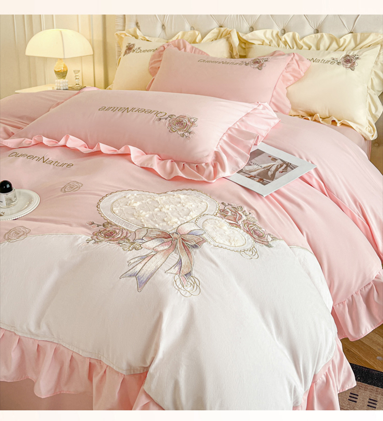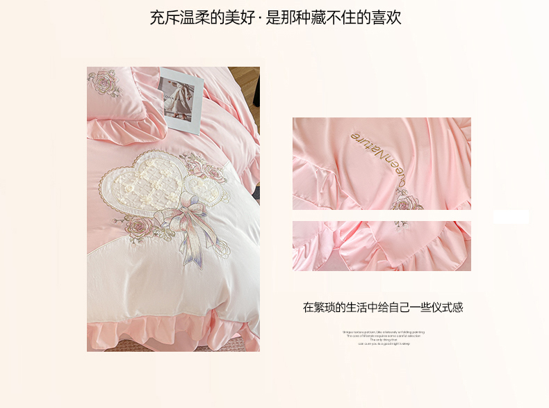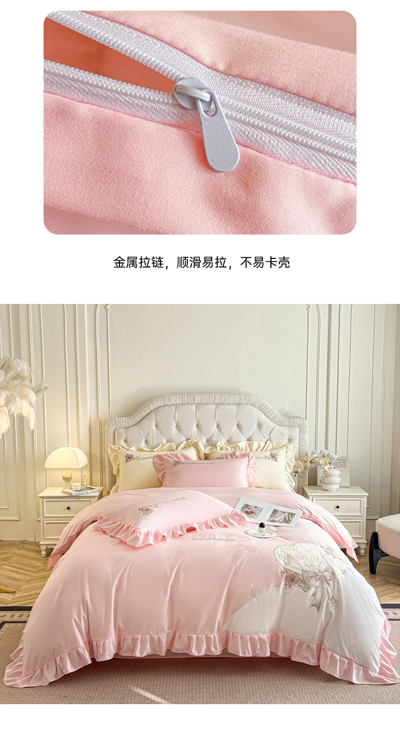 商品名称:七七家纺 2025新款水洗棉刺绣四件套梦见系列 梦见粉