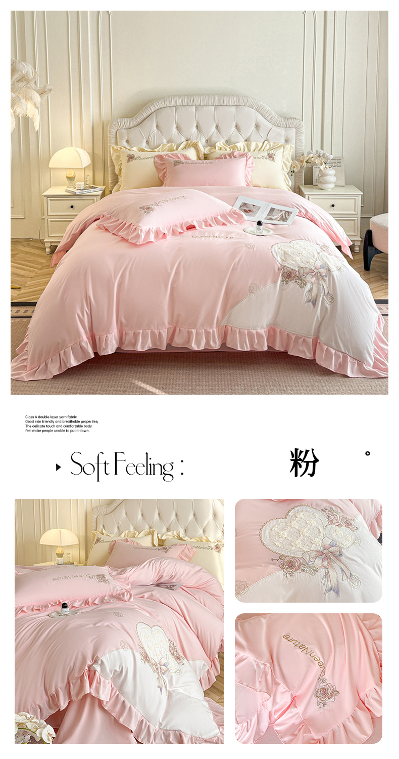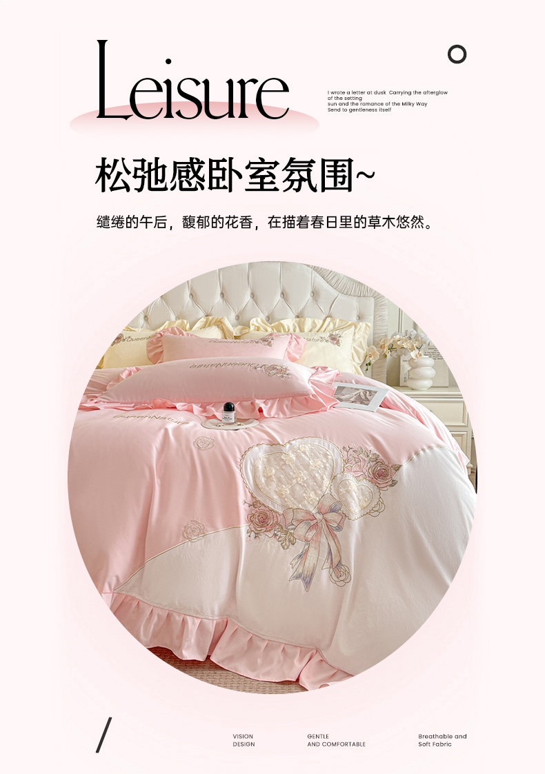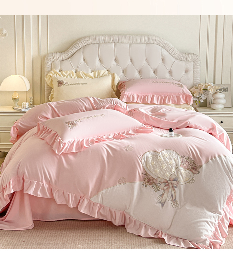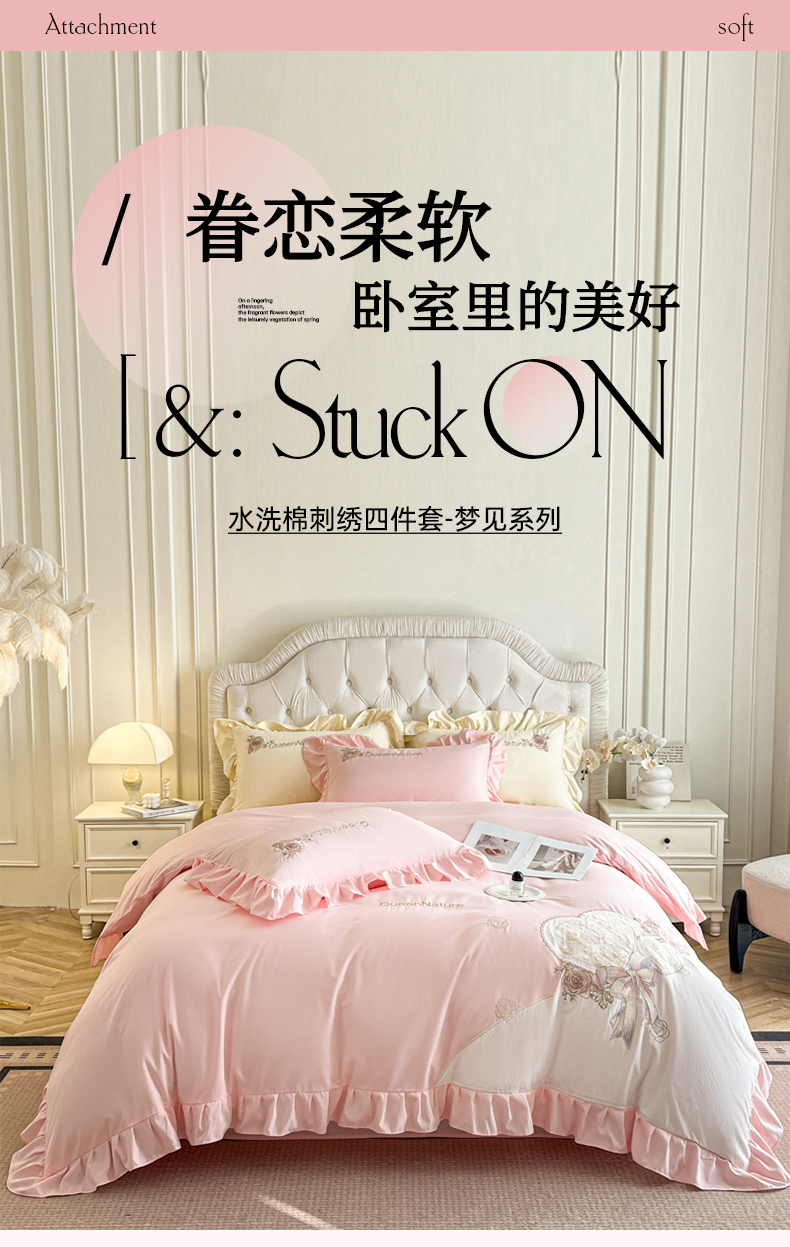 七七家纺 2025新款水洗棉刺绣四件套梦见系列 梦见粉