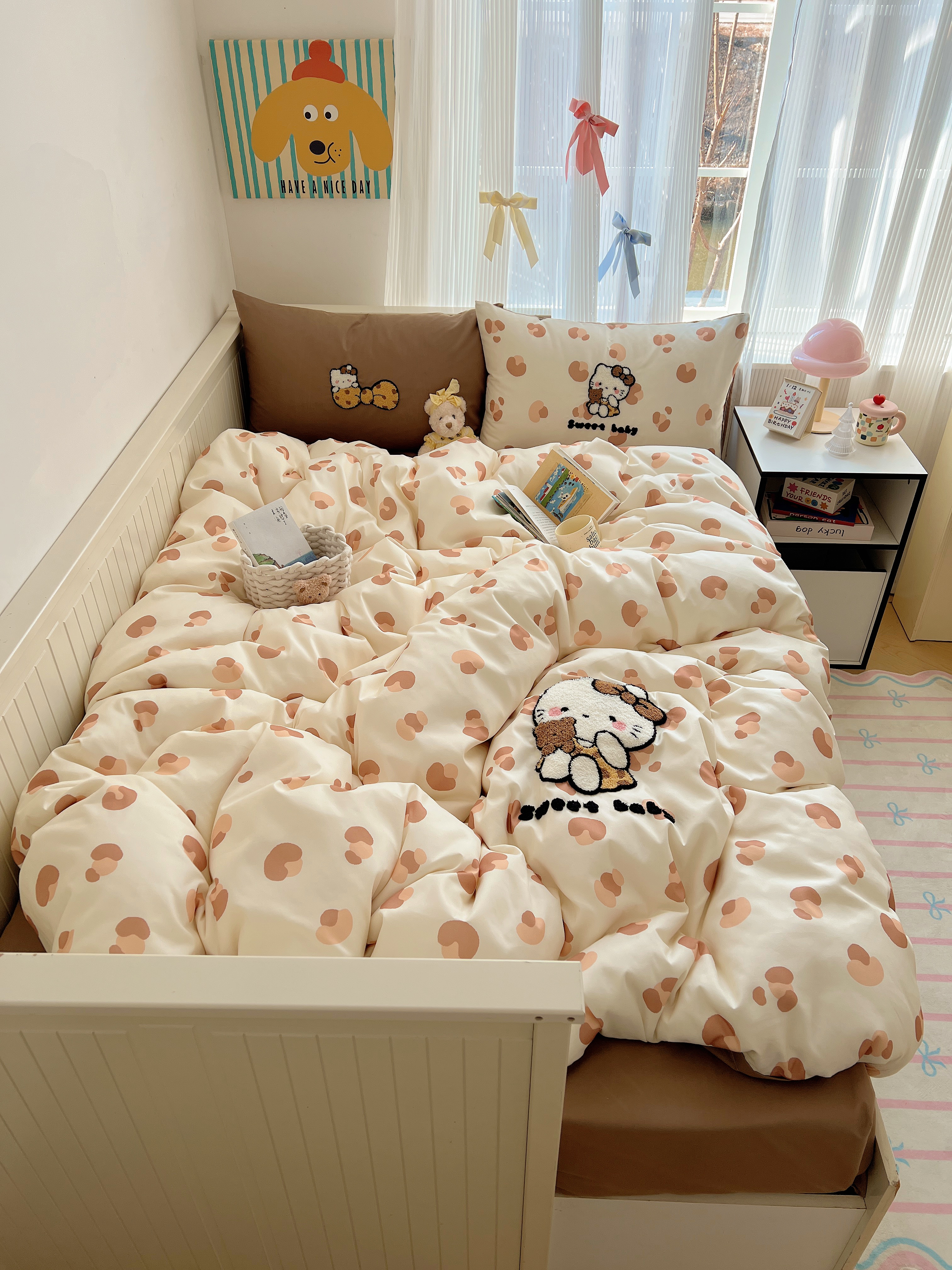 (总)桃喜 2026新款全棉混搭卡通印花学生三件套四件套,费尔岛蝴蝶结小狗,费尔岛小熊,可爱动物团,可爱小兔子,星星猫咪