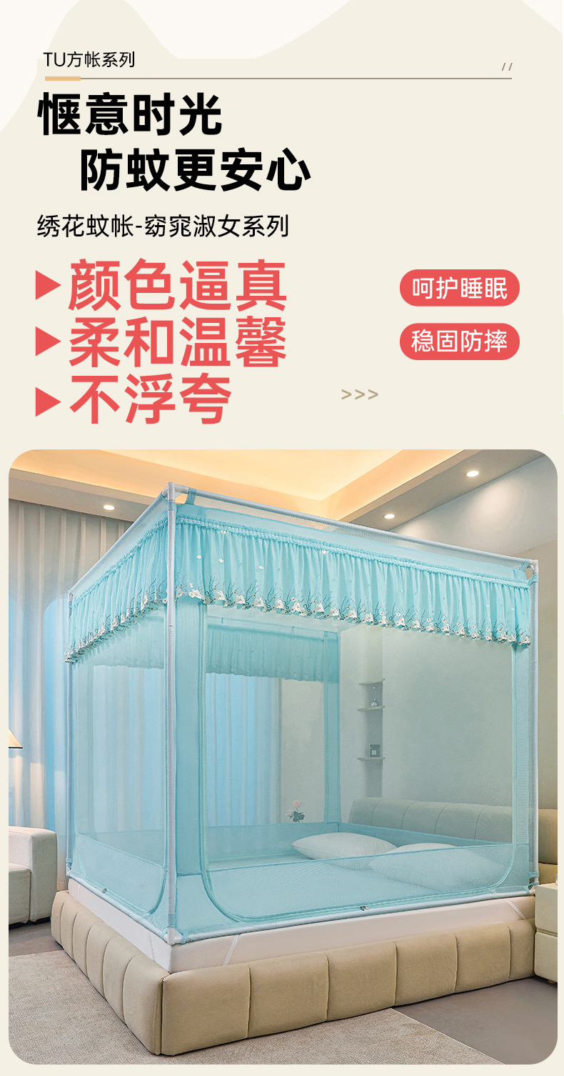 (总)梦尔佳蚊帐2025新款TU绣花蚊帐-859窈窕淑女系列,温馨如玉,高雅银灰,清爽水蓝,宛如白霞,喜庆粉红,优雅嫩黄