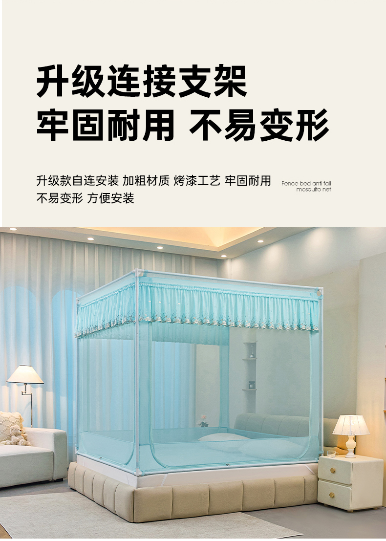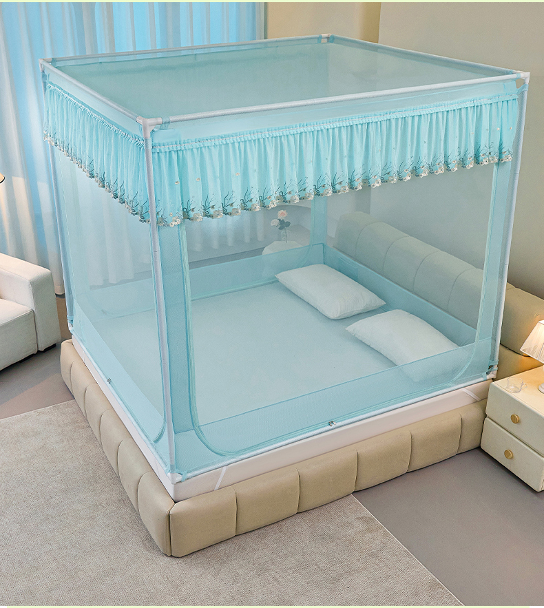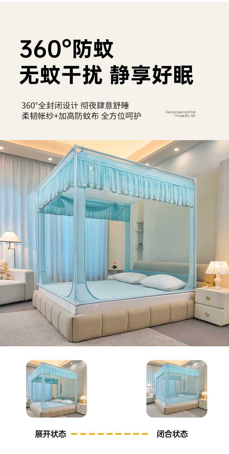 (总)梦尔佳蚊帐 2025新款双层花边全包围全底款和床笠款三开门蚊帐-863系列青春亮丽,淡蓝,米黄,沫绿,藕玉,洁白