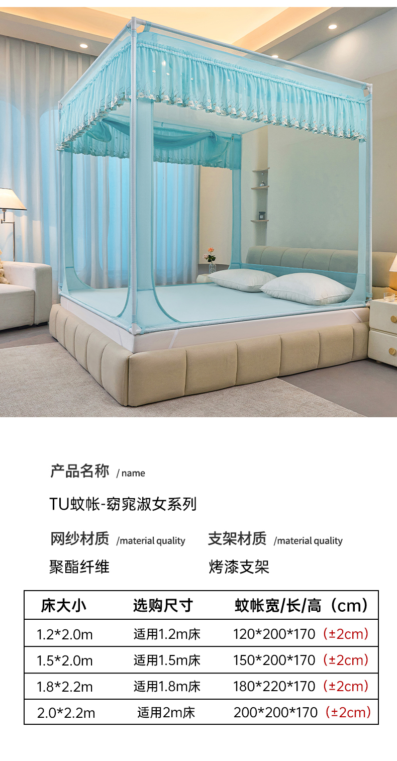 商品名称:梦尔佳蚊帐2025新款TU绣花蚊帐-859窈窕淑女系列 清爽水蓝