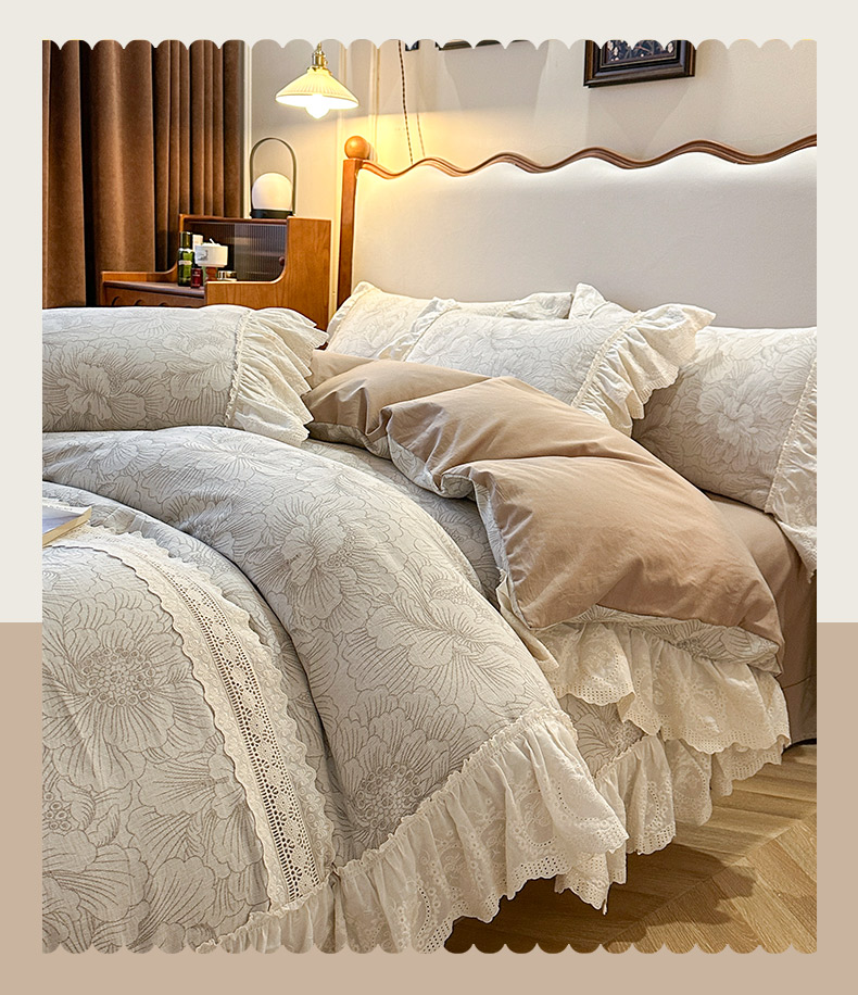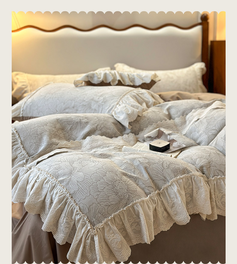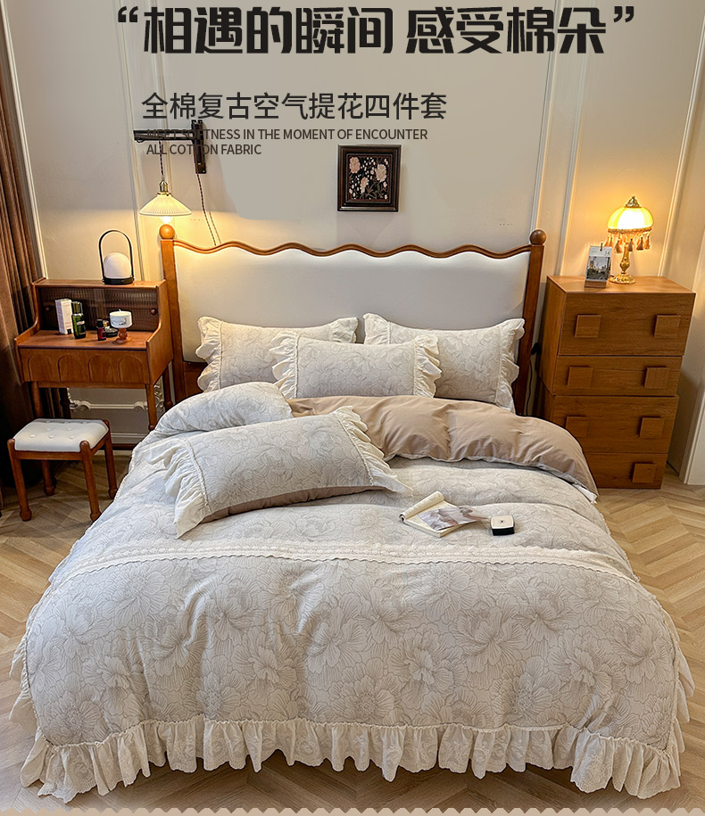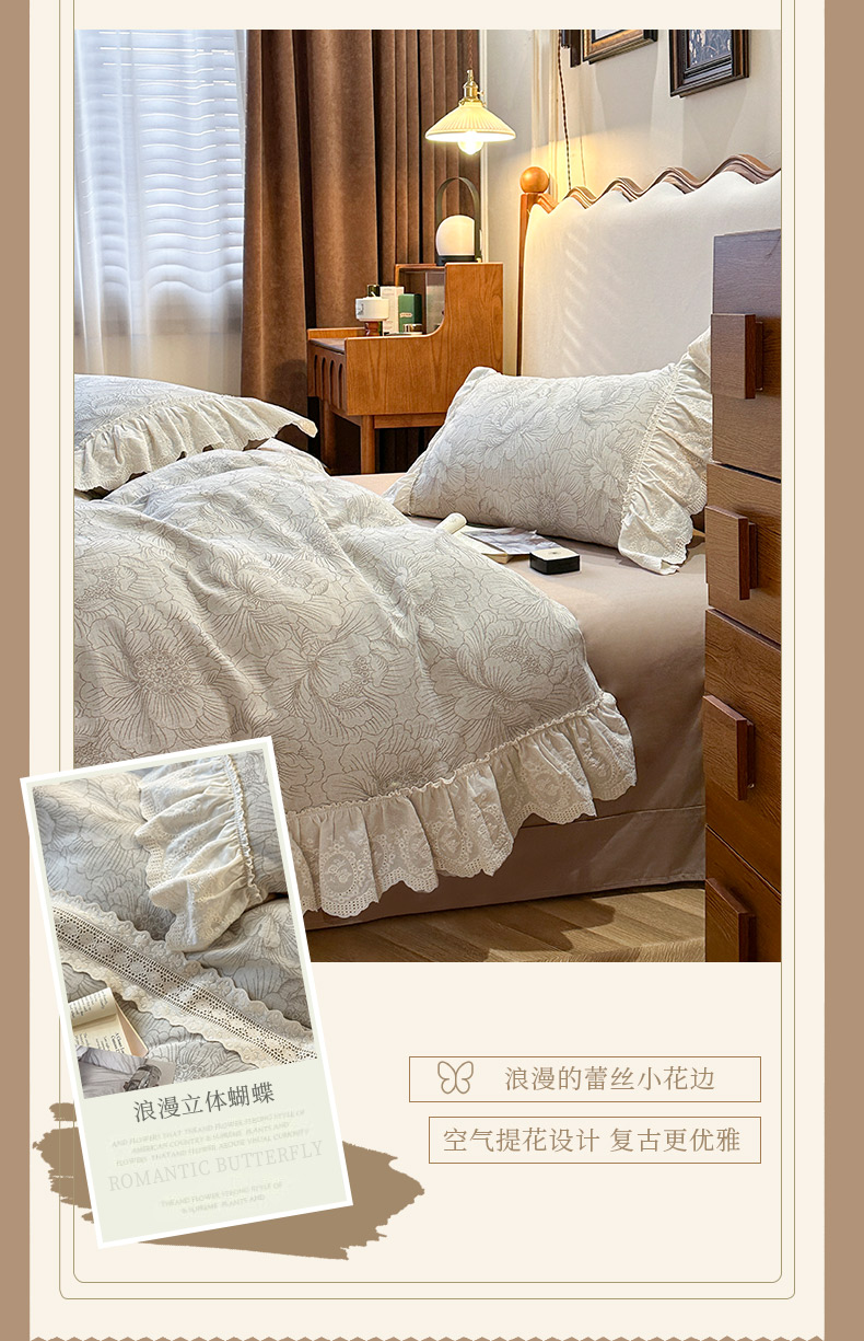 (总)亲亲公主 2025新款全棉法式宽花边四件套-午后佳人,午后佳人