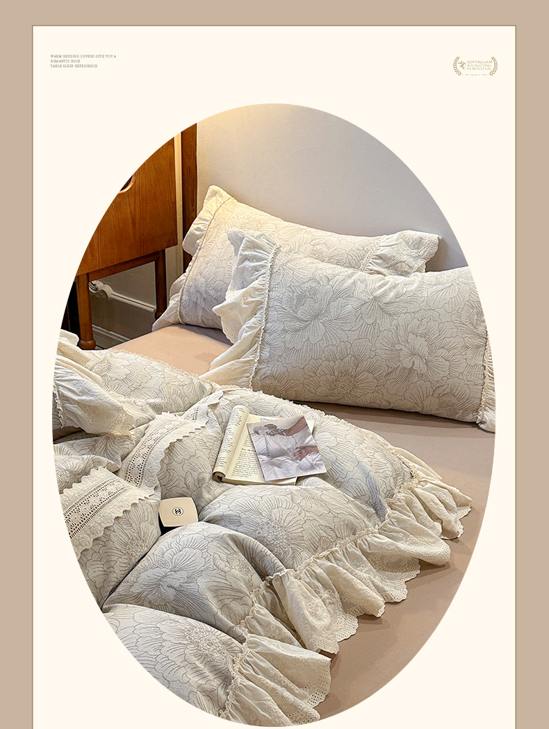 (总)亲亲公主 2025新款加厚高克重牛奶绒法式公主风四件套-热恋玫瑰,粉玉,奶白