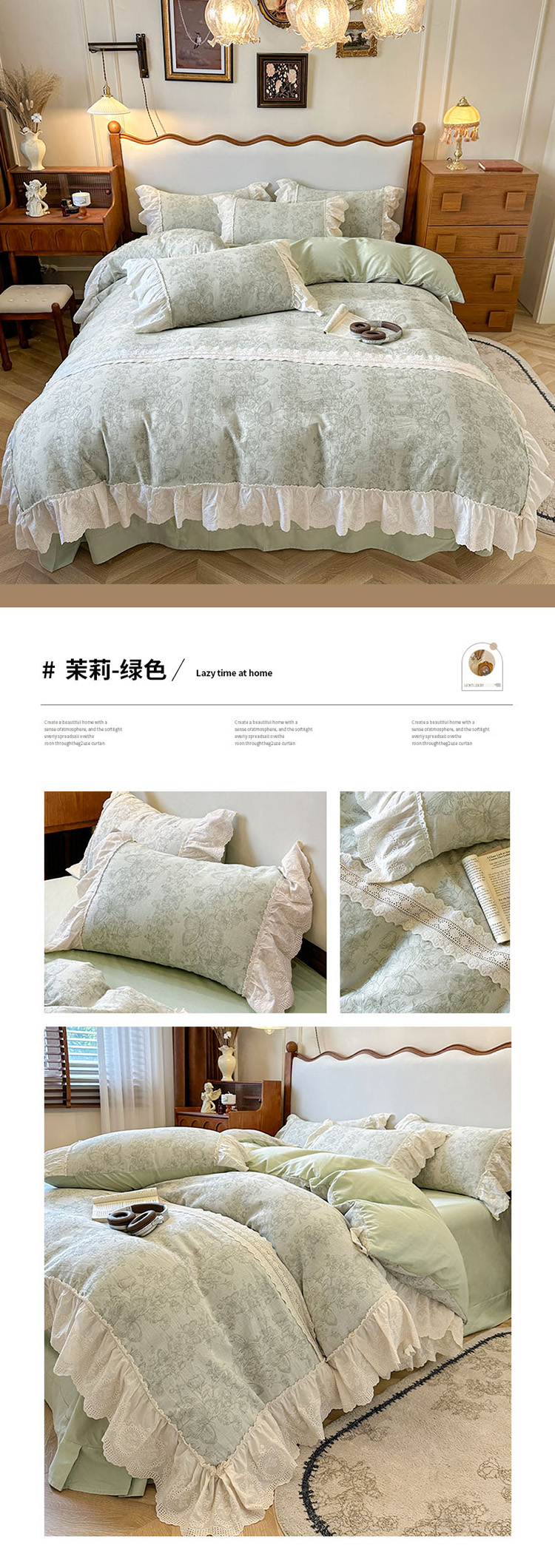 (总)亲亲公主 2025全棉蕾丝花边床裙公主风四件套,甜心花园-玉色,甜心花园-绿色,甜心花园-黄色,甜心花园-浅紫色,甜心花园-蓝色,甜心花园-粉色