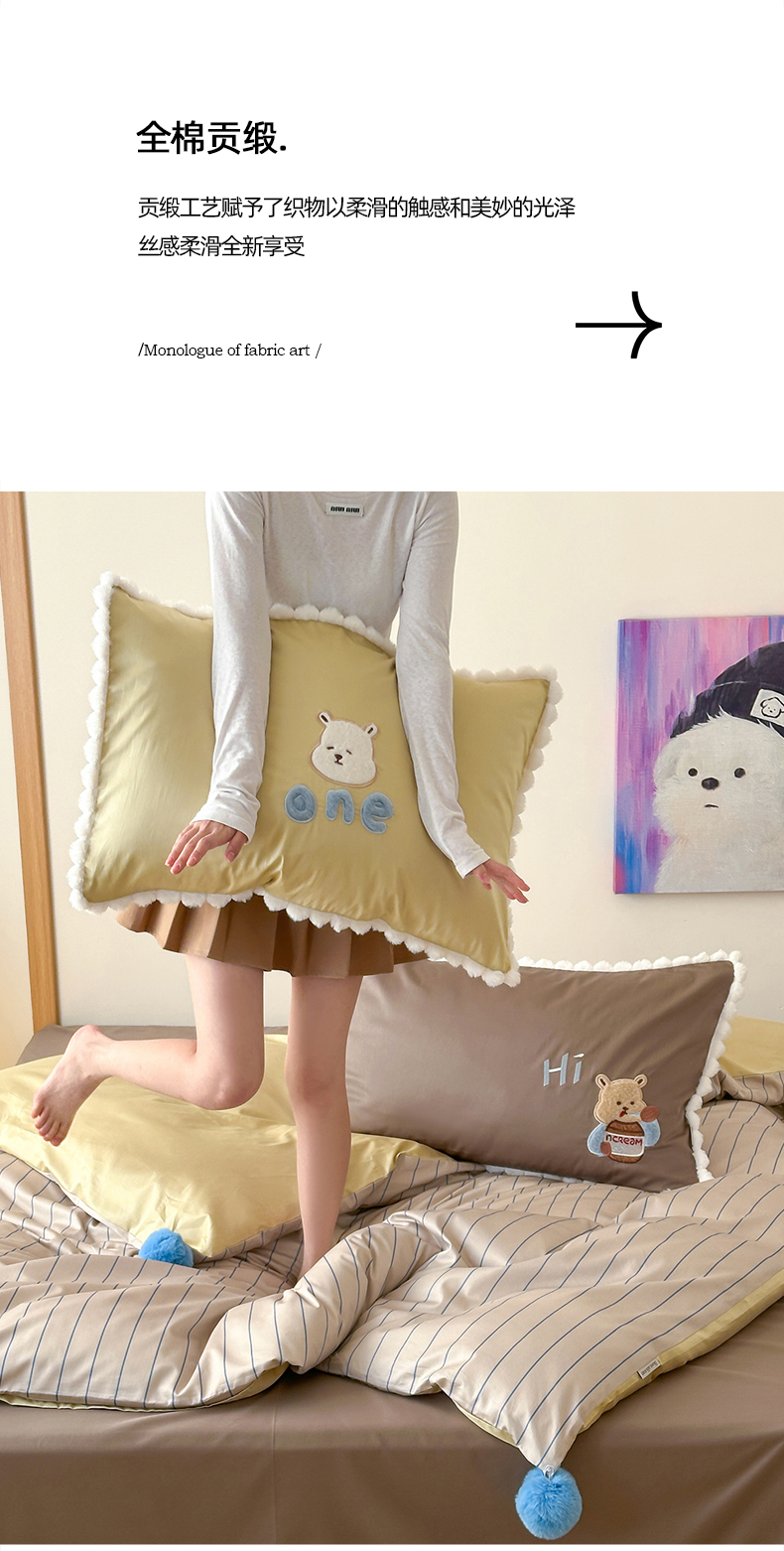 桔子家纺 2025新款100支长绒棉系列 长绒棉奶油小熊