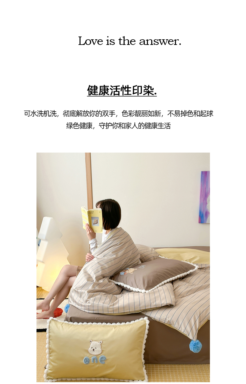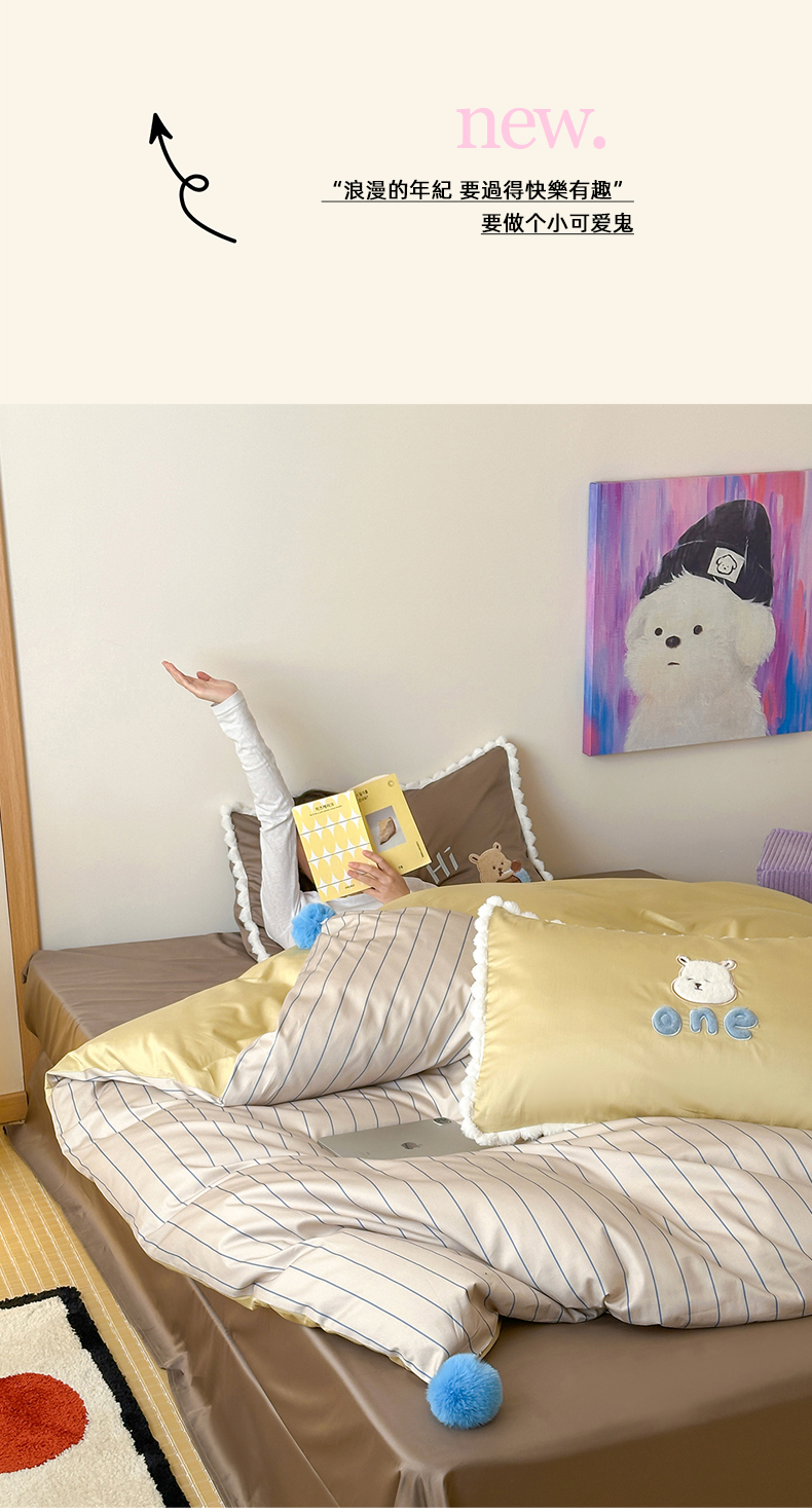 (总)桔子家纺 2026春夏新款100s全棉纯棉幸运系列四件套-场景二,幸运果(白色),幸运果(棕色),幸运小马