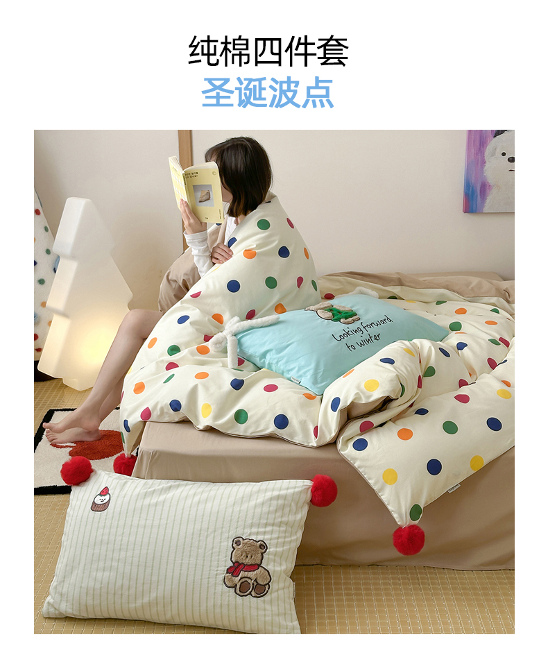 当前位置: 91家纺网 > 商品网购 > 床品套件 > 四件套 > 水洗棉四件套 > 桔子家纺 2025新款水洗棉蝴蝶结卡通系列 圣诞波点(棉)
