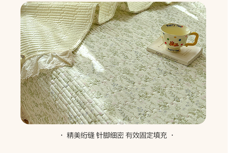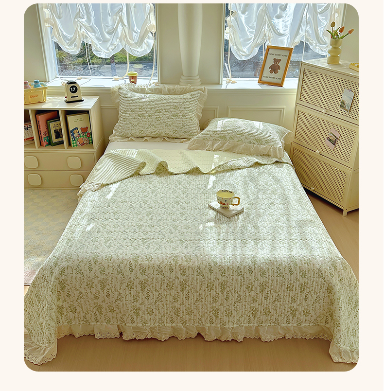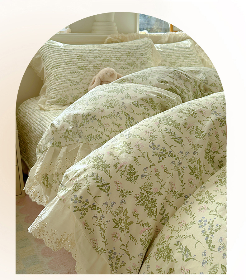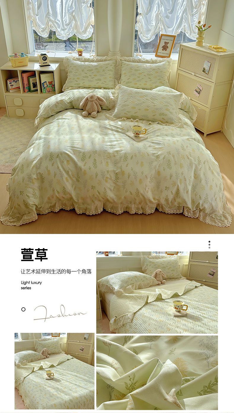 商品名称:美梦家纺 2025新款A类全棉13372花边床盖四件套-白边 白边-忘忧草